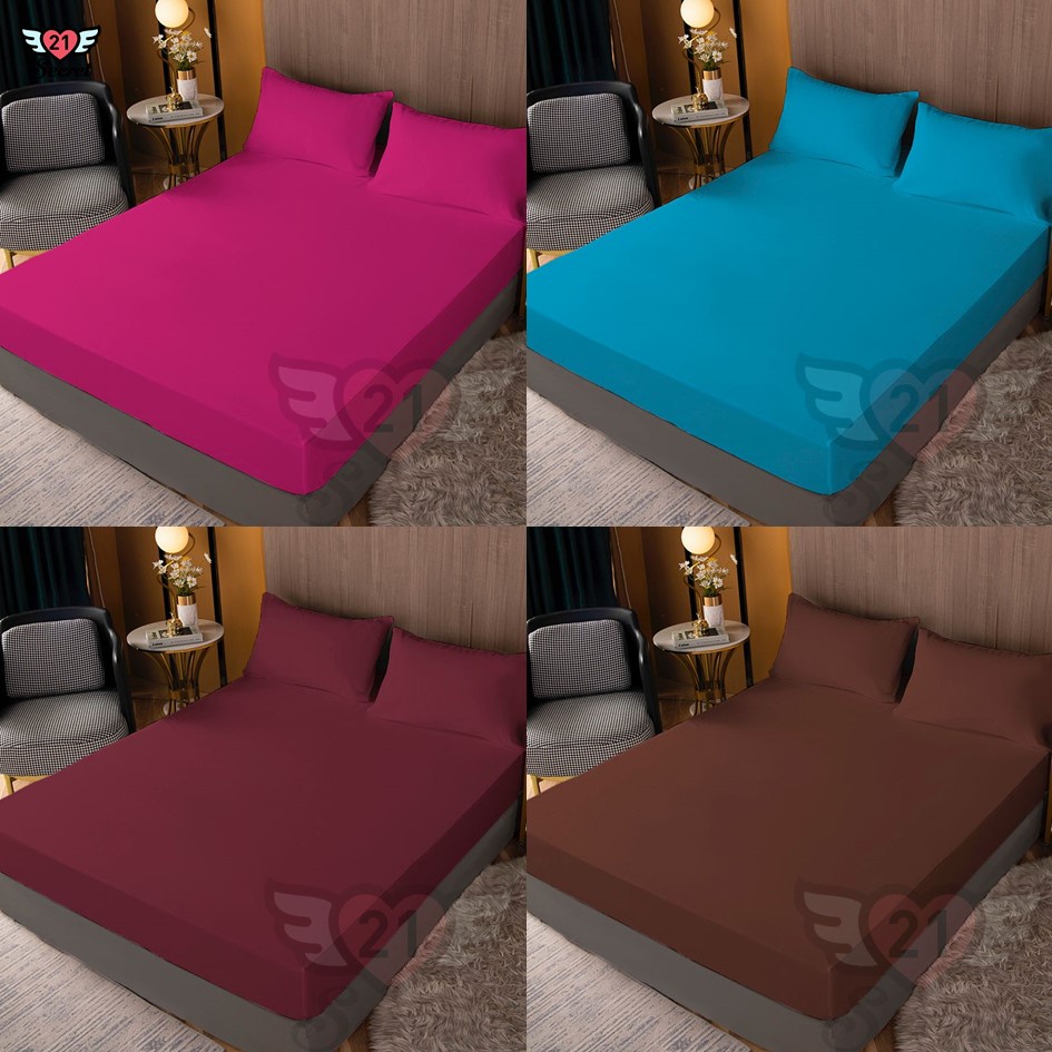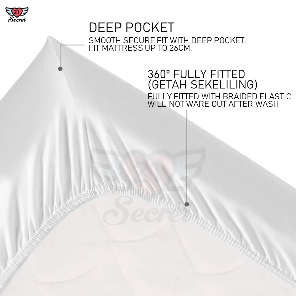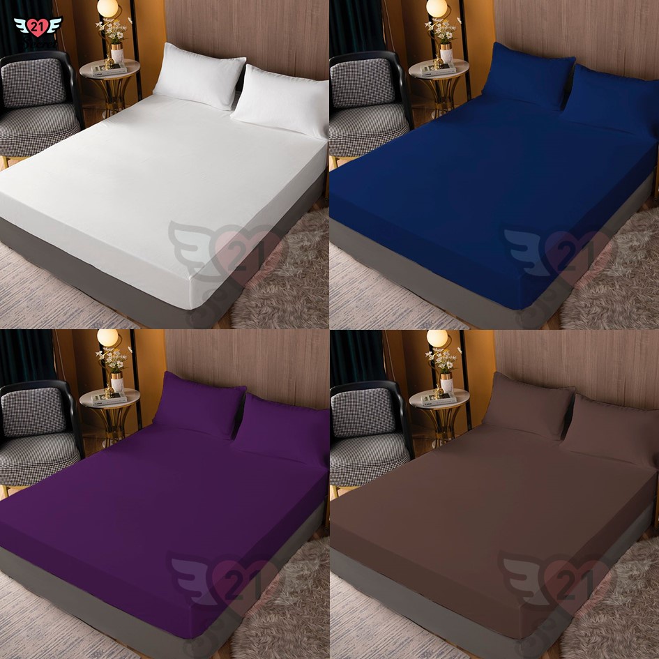Premium Cotton Bedsheet Fitted Bedsheet Plain Single Super Single Queen King Bed sheet Cadar Tilam Getah Keliling