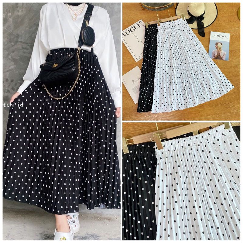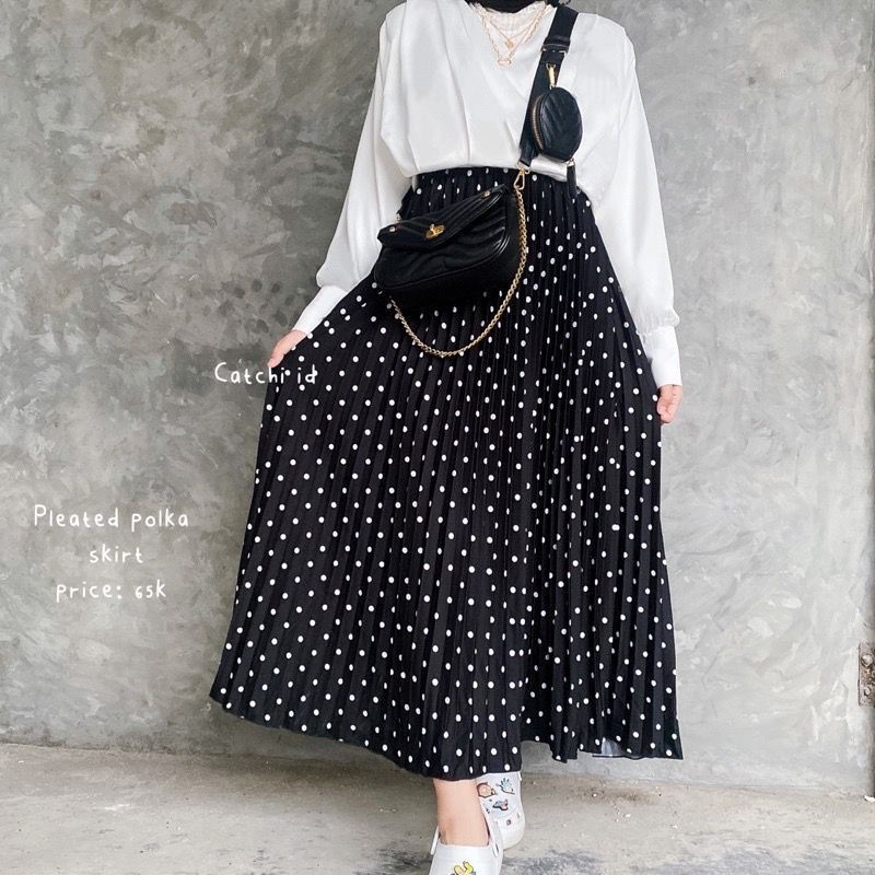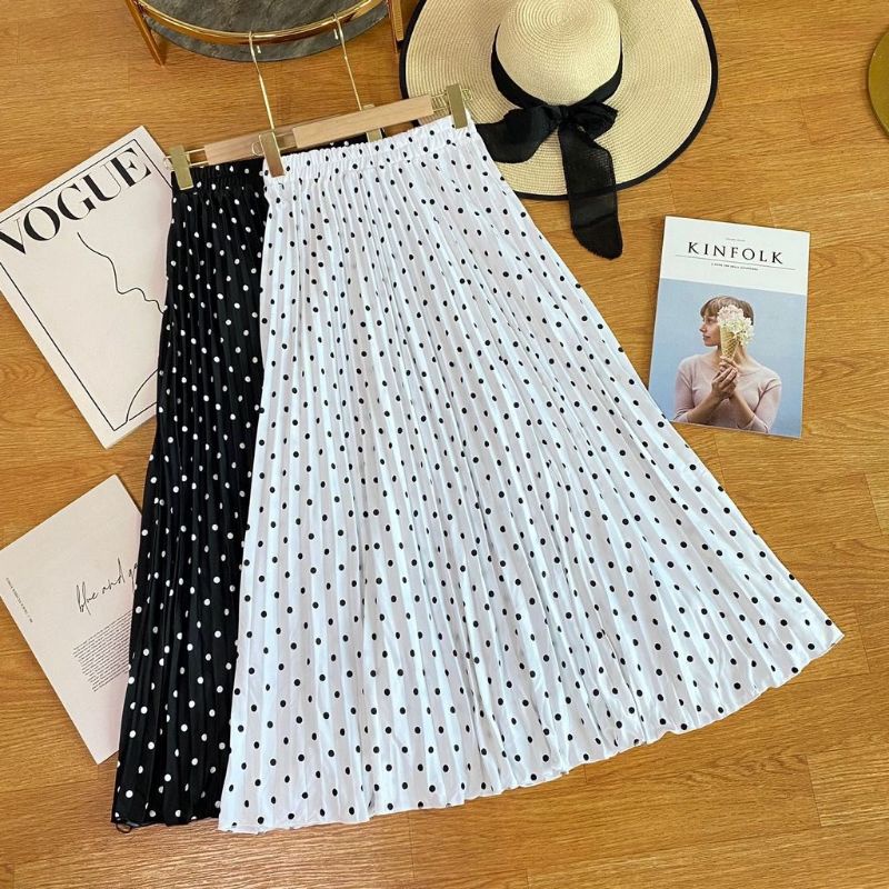 Premium Pleated Polka Dot Skirt Mayung Jersey Hyget Large Folds Pleated Polka Dot Skirt Long Bottom Hitz