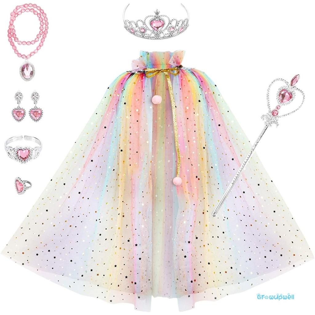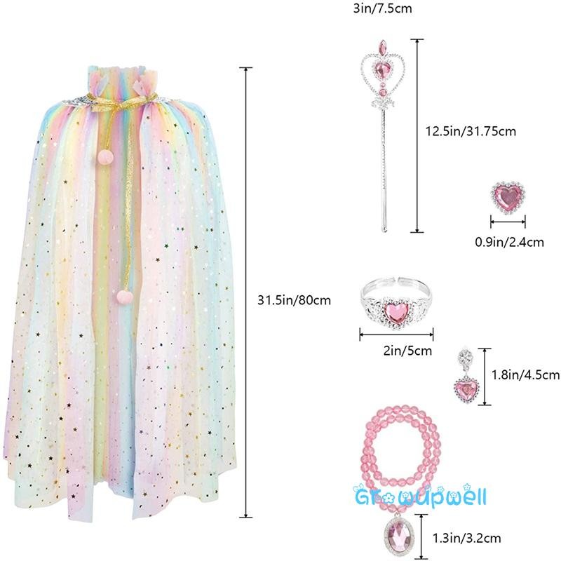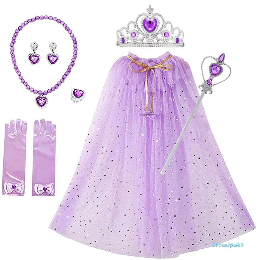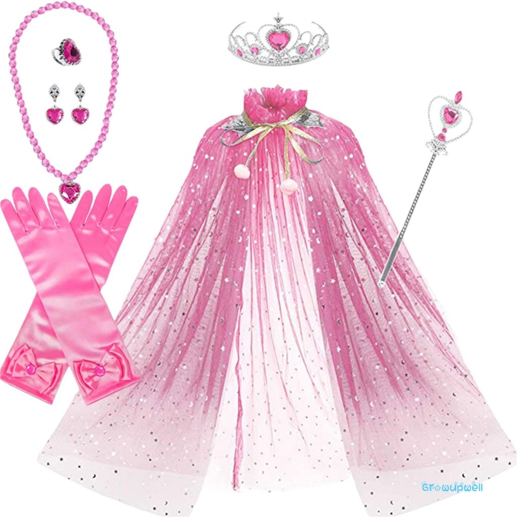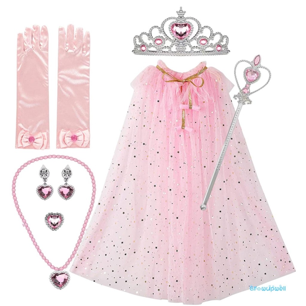 Princess Cape Cloak Princess Dress Up Costume for Girls Crown Wand Necklace Gloves Ring Earrings for Birthday Cosplay Party