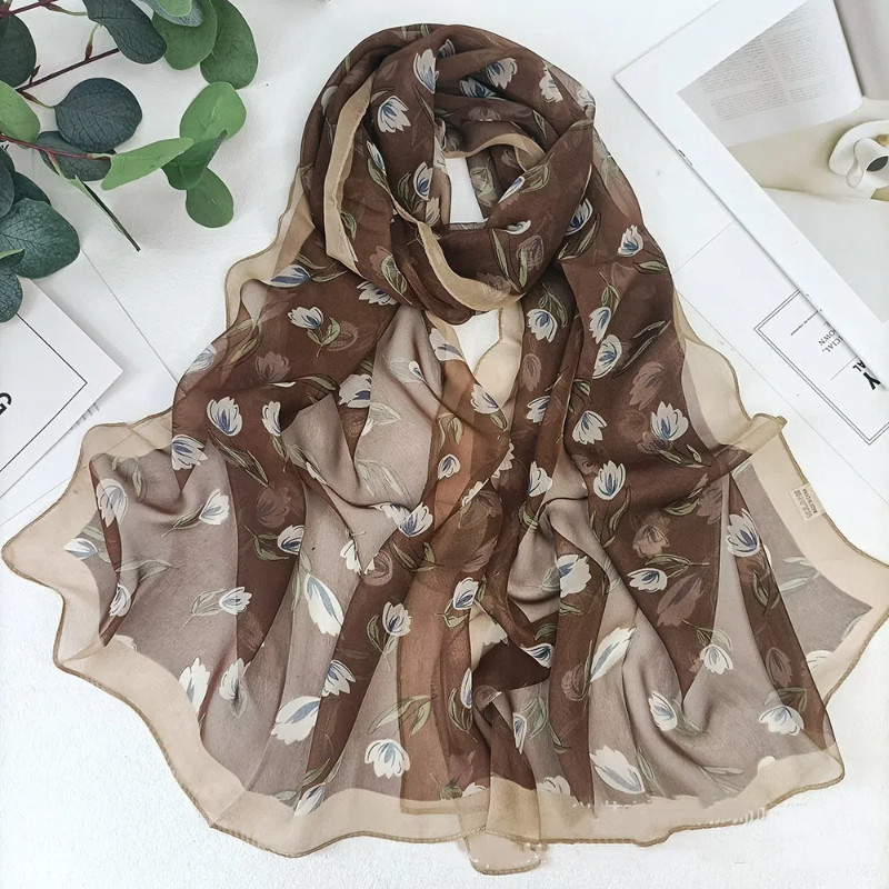 Printed Magnolia Shawl New Fashion Women Floral Printing Beach Georgette Scarf Shawls Female Long Wraps Sunscreen Hijab