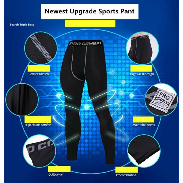 Pro Combat Baju Seluar Lelaki Bola Tight Pants Pro Combat Lengging Gym Running Football