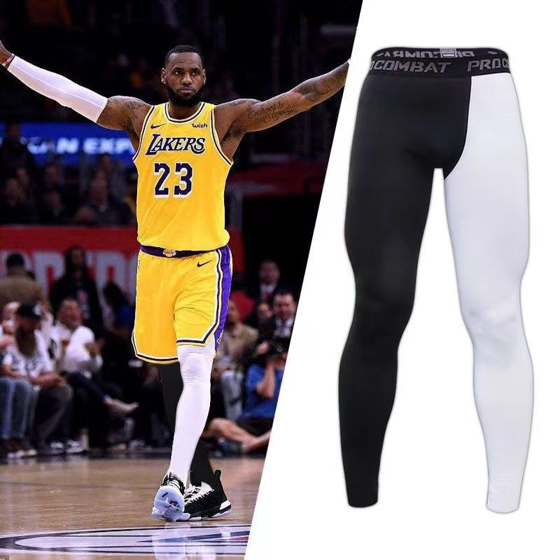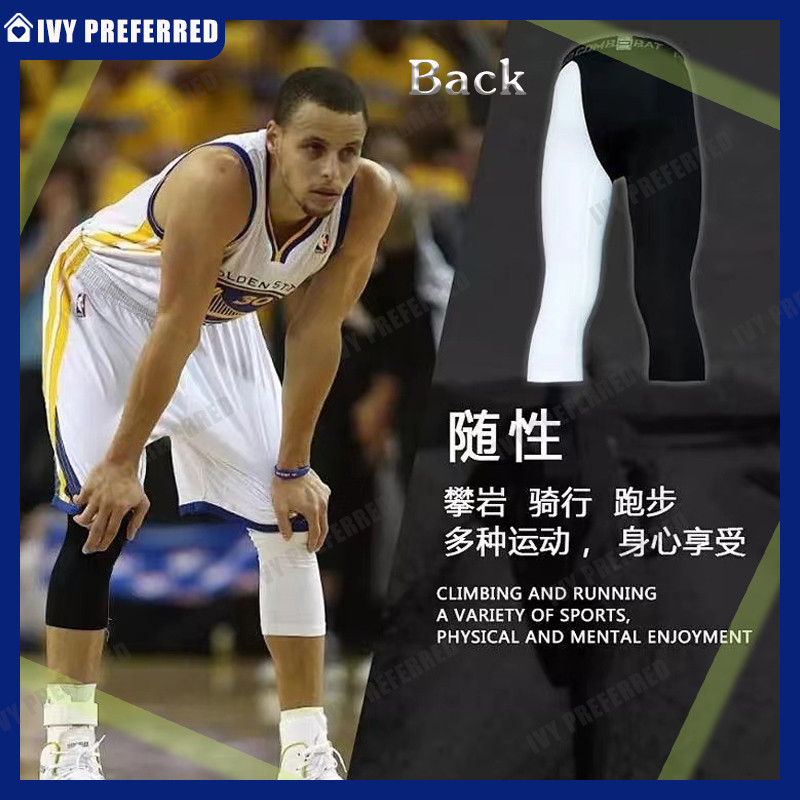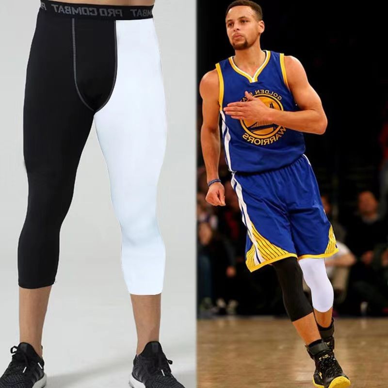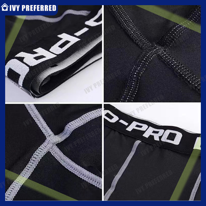 Pro Combat Leggings Tight Pants Men For Gym Running Swimming Seluar Tight Lelaki Quick Dry Sportwear White and Black Color Stitching Leggings Unisex Tights for 3/4 Length Pants