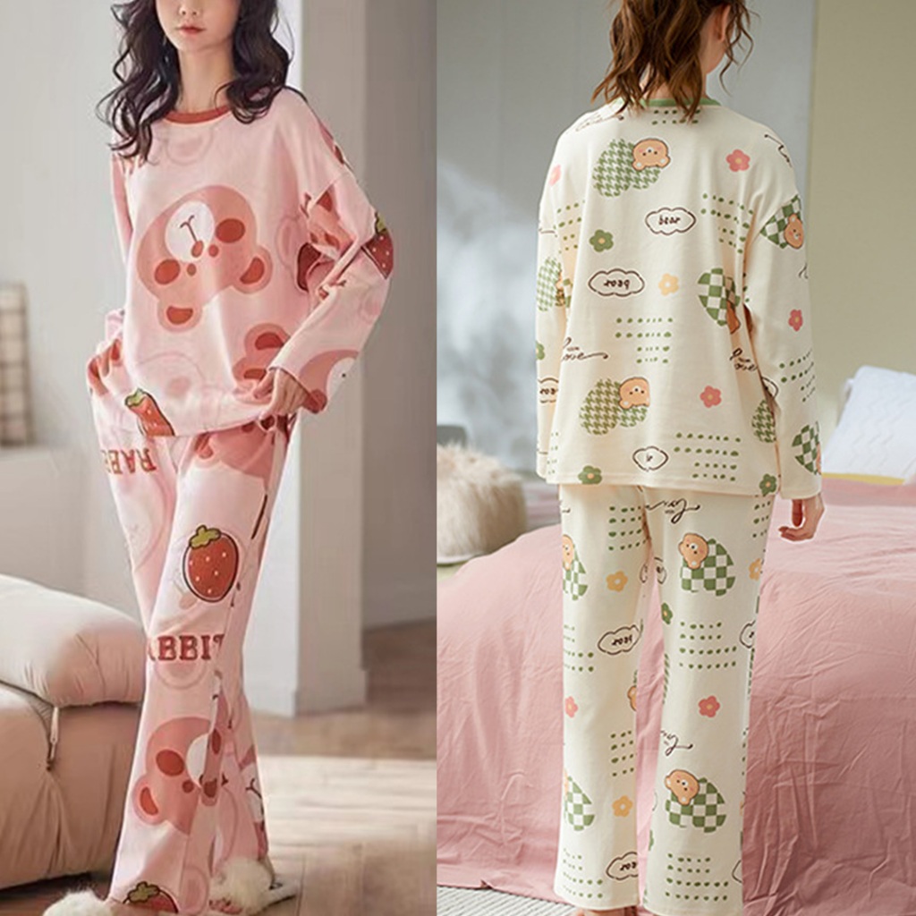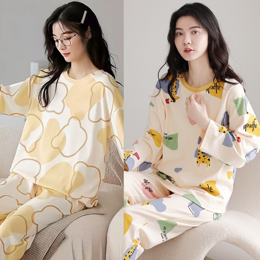 [PROMO] Pyjamas Woman Discount Long Sleeve Long Pants Pajama Women Sleepwear Girl Baju Tidur Wanita Tido Perempuan PJ088
