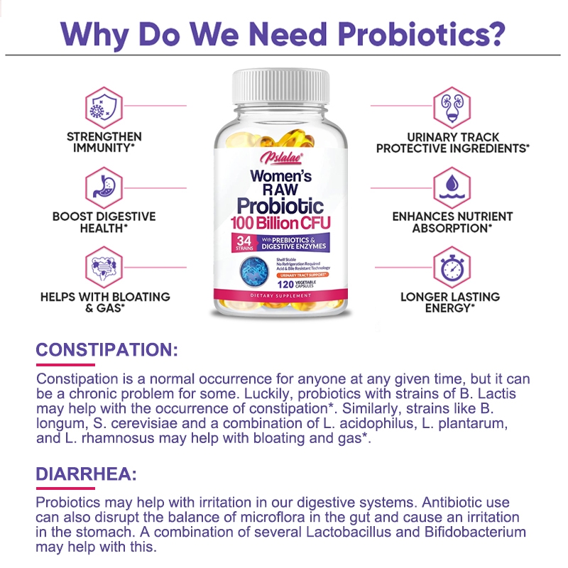 Pslalae Probiotics for Women 100 Billion CFU 34 Probiotic Strains with Prebiotics for Digestive, Vaginal & Immune Health, Dairy Free, Shelf Stable