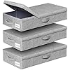 punemi Under Bed Storage Containers, 3 Pcs Large Blanket Clothes Storage Bag, Long Flat Firm Sides Underbed Organization And Storage w/ 3 Handles & Lid For Comforter Toy Closet, 31.1*15.7*6 inch Tall