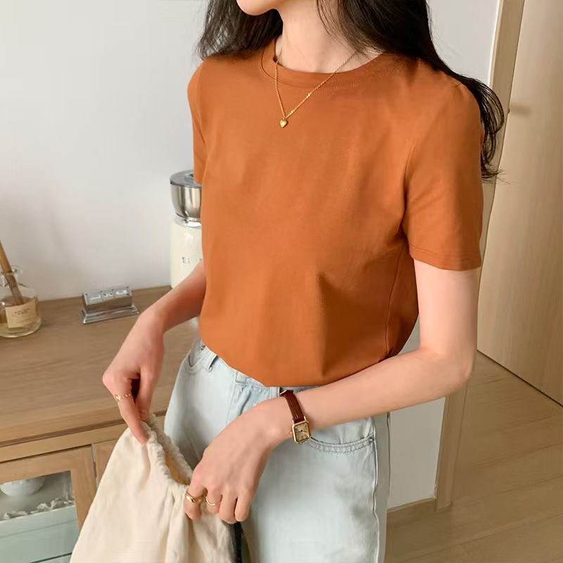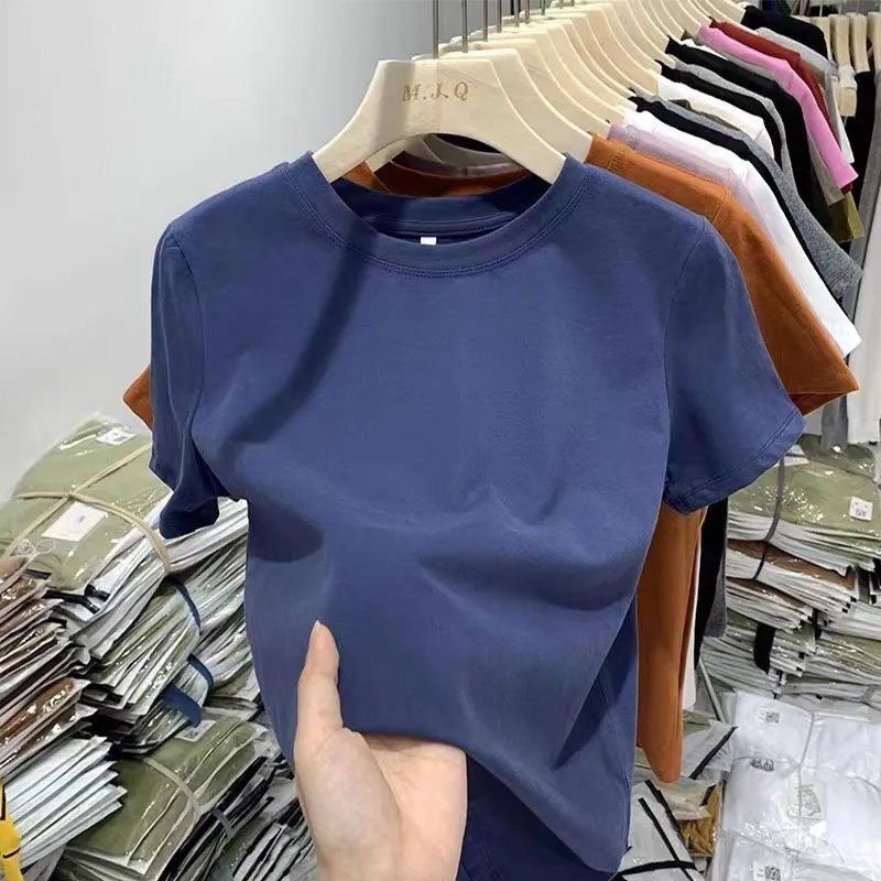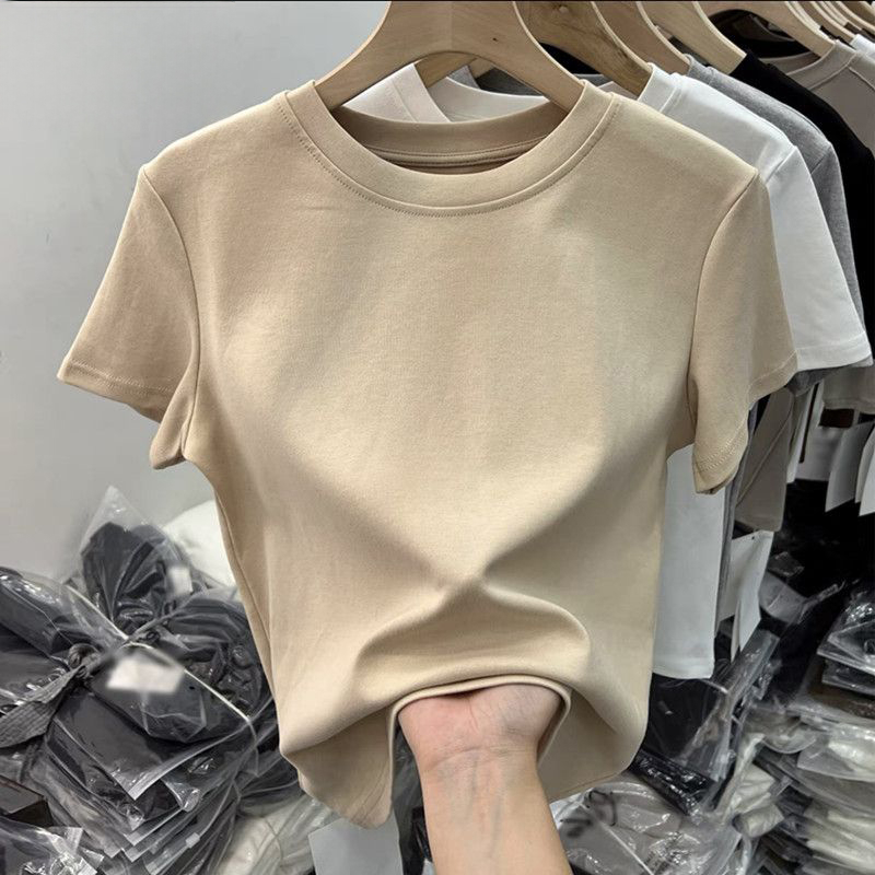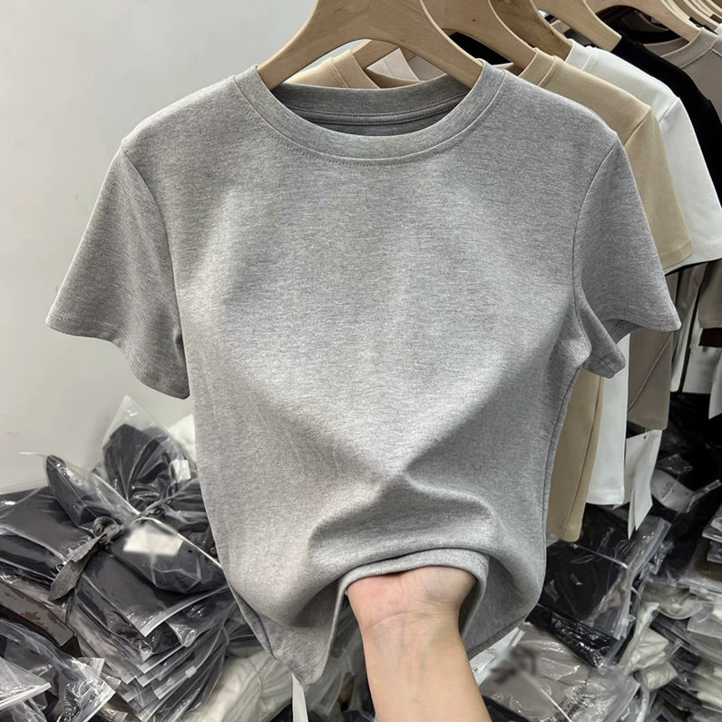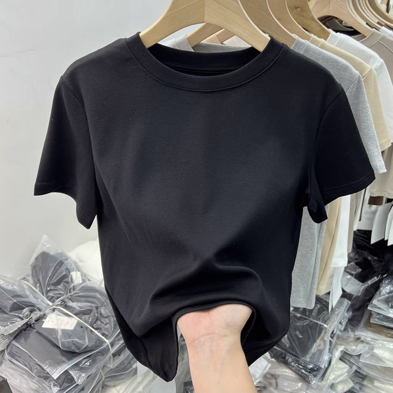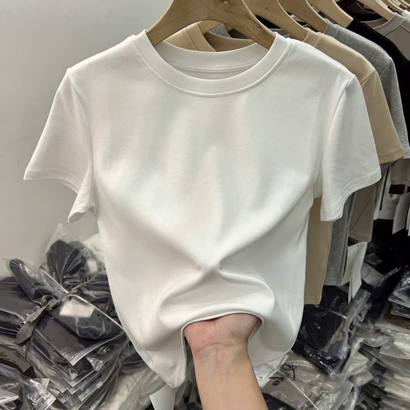 Pure Cotton 40 Count Odell 92 Cotton 8 Spandex Short-Sleeved T-shirt Slim-Fit High Stretch Blank Version women top white t shirt