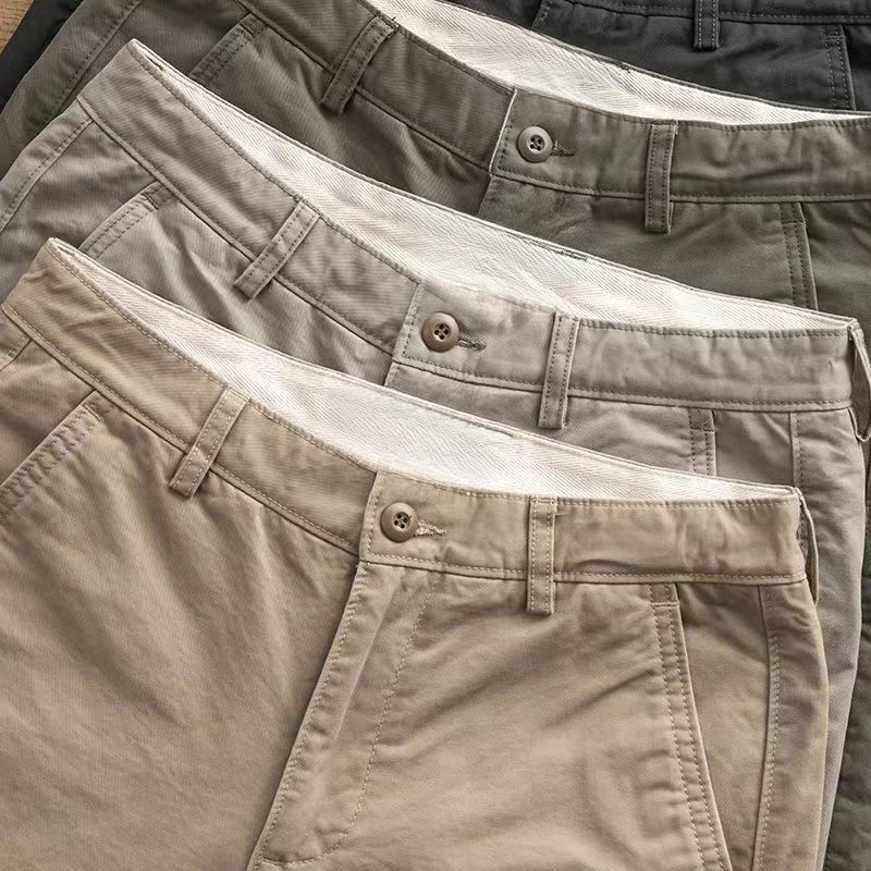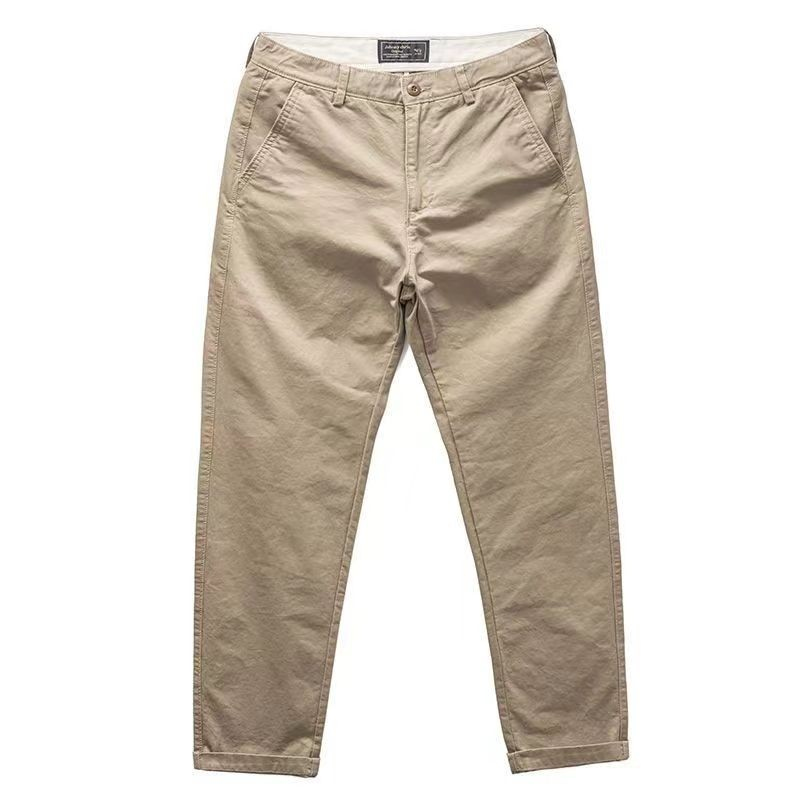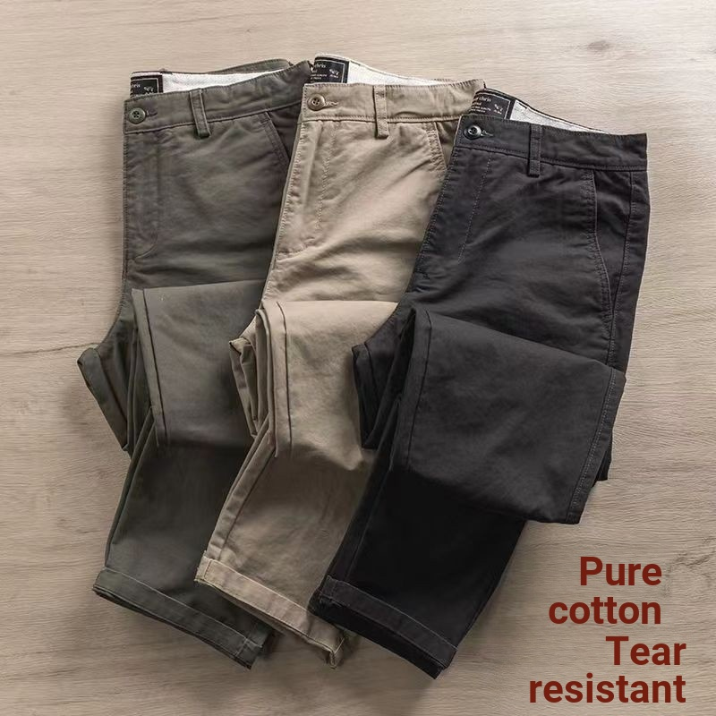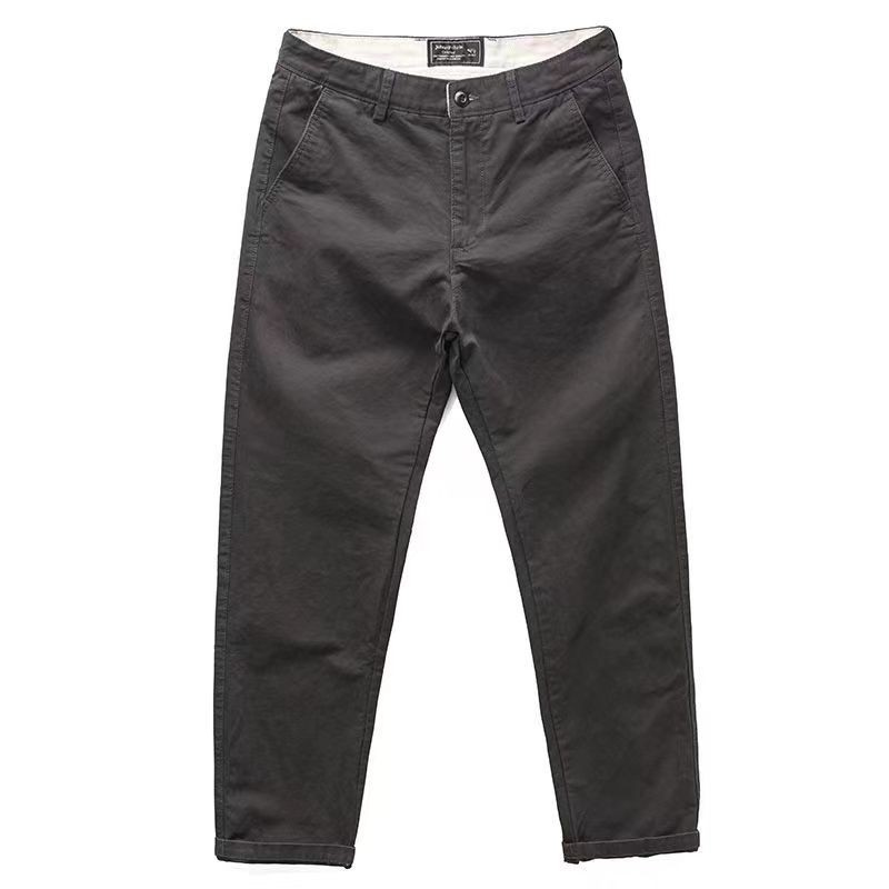 Pure Cotton Simple Casual Pants 2024 New Style Hong Kong Style Korean Version All-Match Trendy Trousers Men's Slim-fit Straight Long Pants