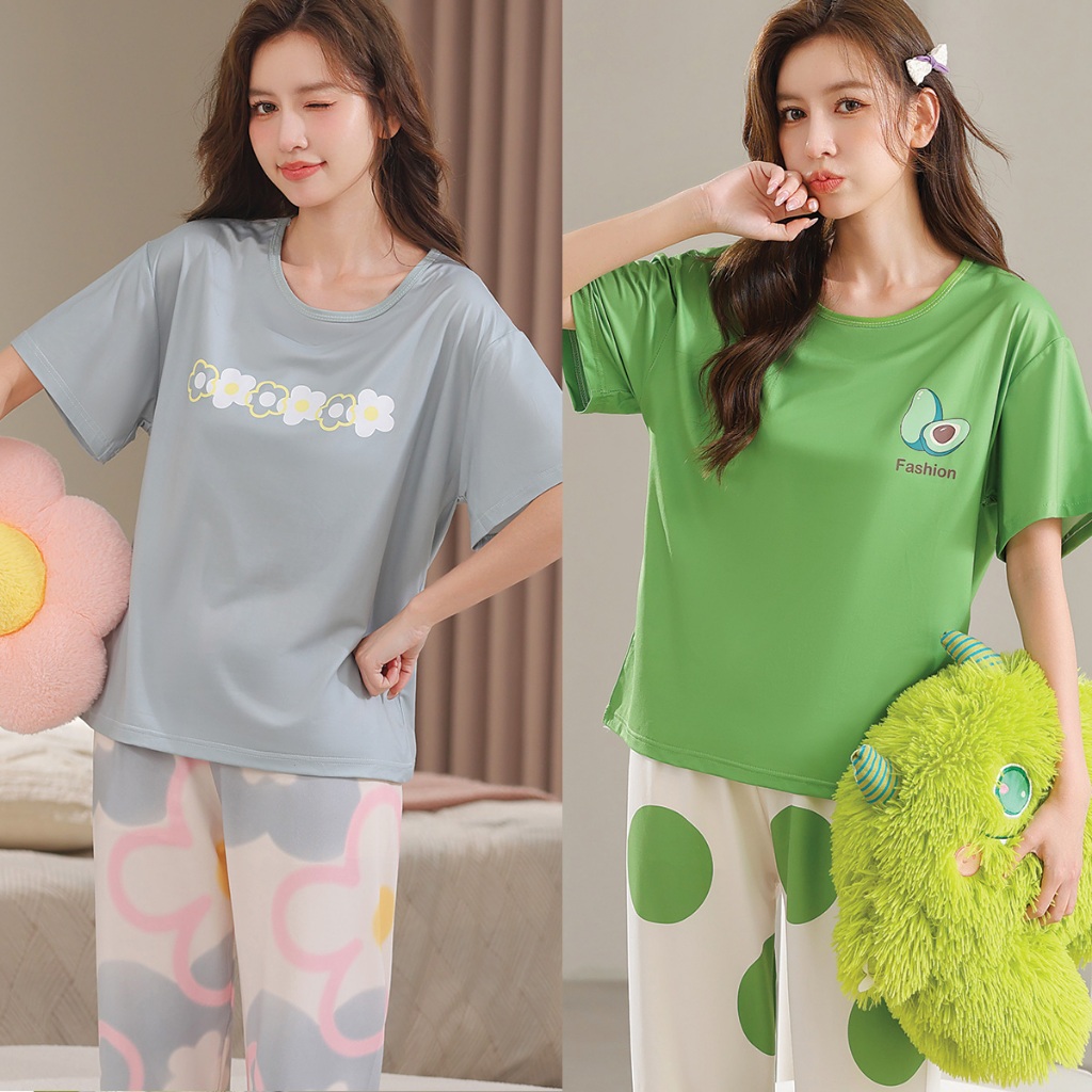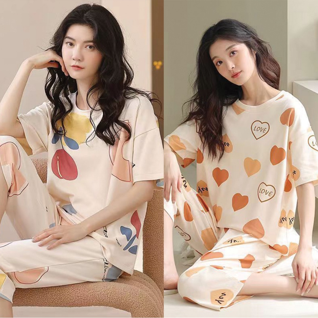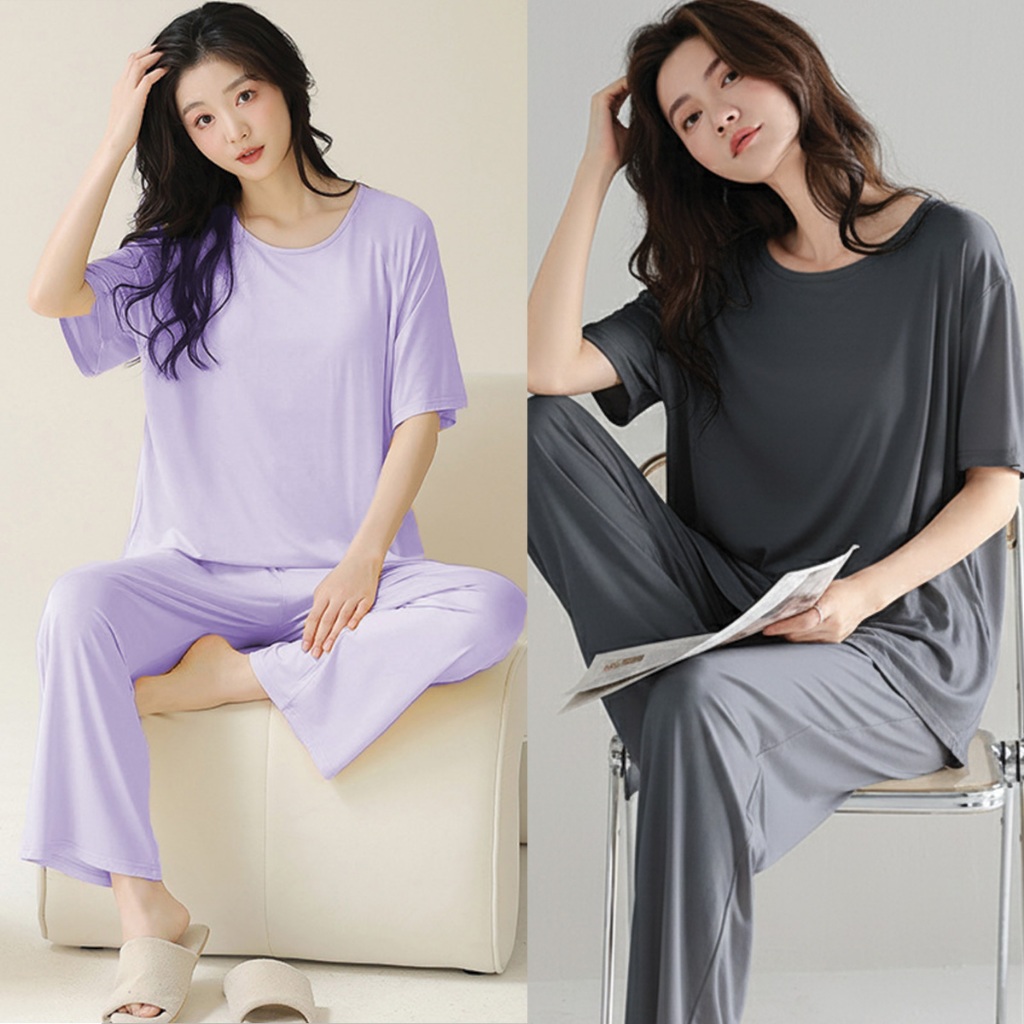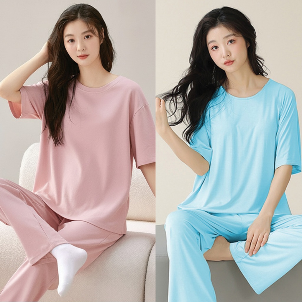 Pyjamas Plain Design Homewear Baju Duduk Rumah Soft Fabric Piyama Wanita Santai Minimalist Loose Fit PJ089