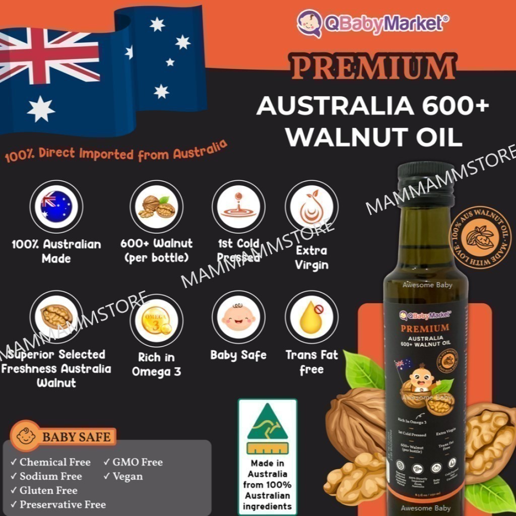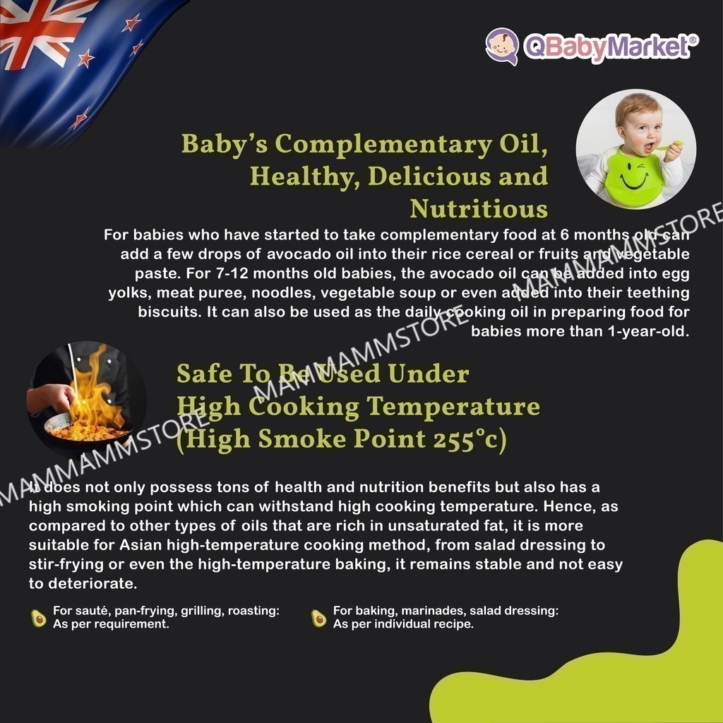 Q Baby Market Minyak Avocado Walnut New Zealand 6bulan+/Q Baby Market New Zealand Avocado Oil Premium Walnut Oil for 6m+