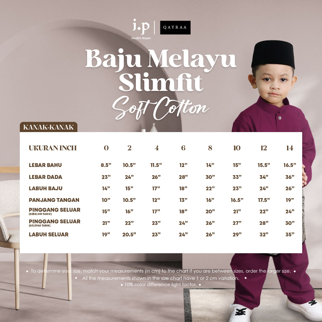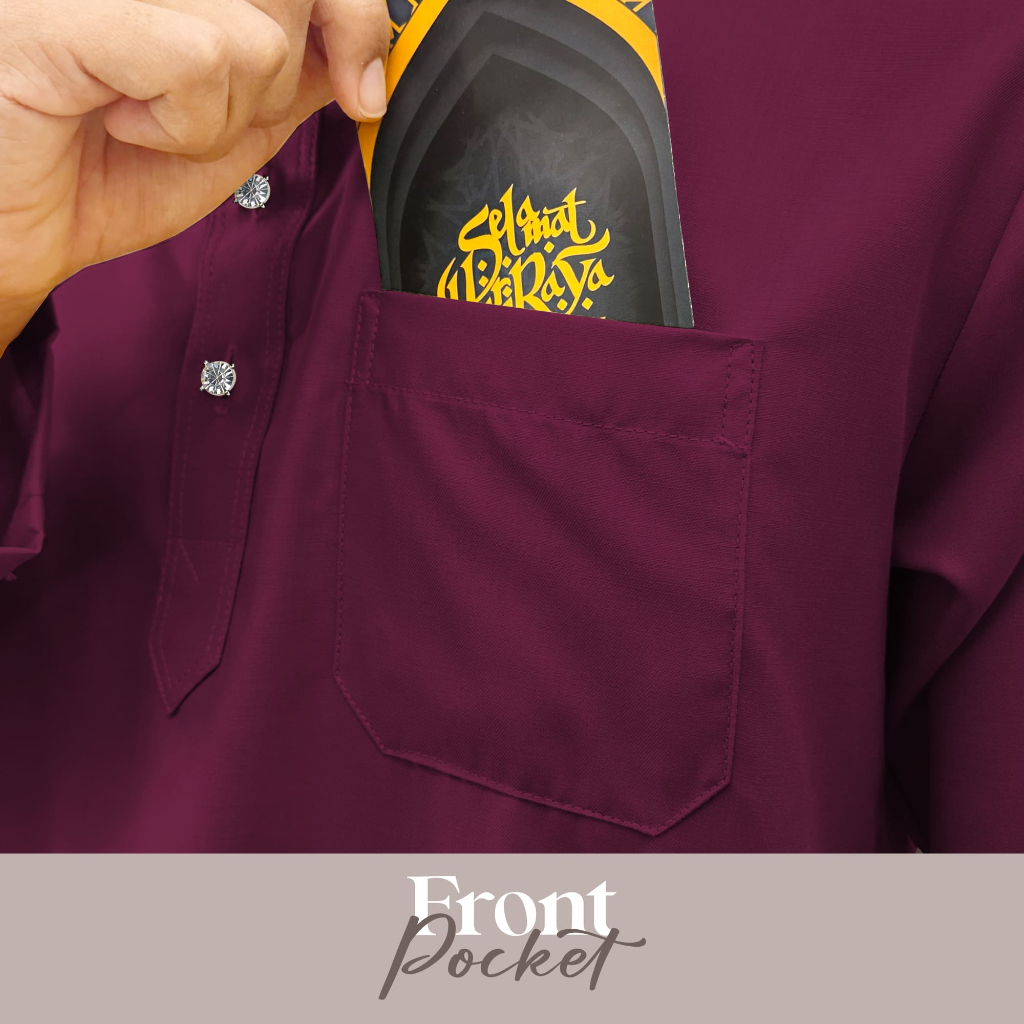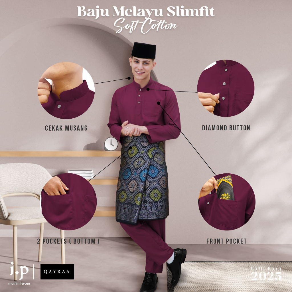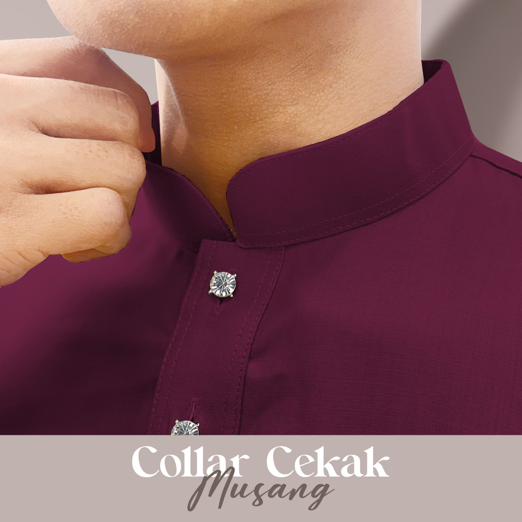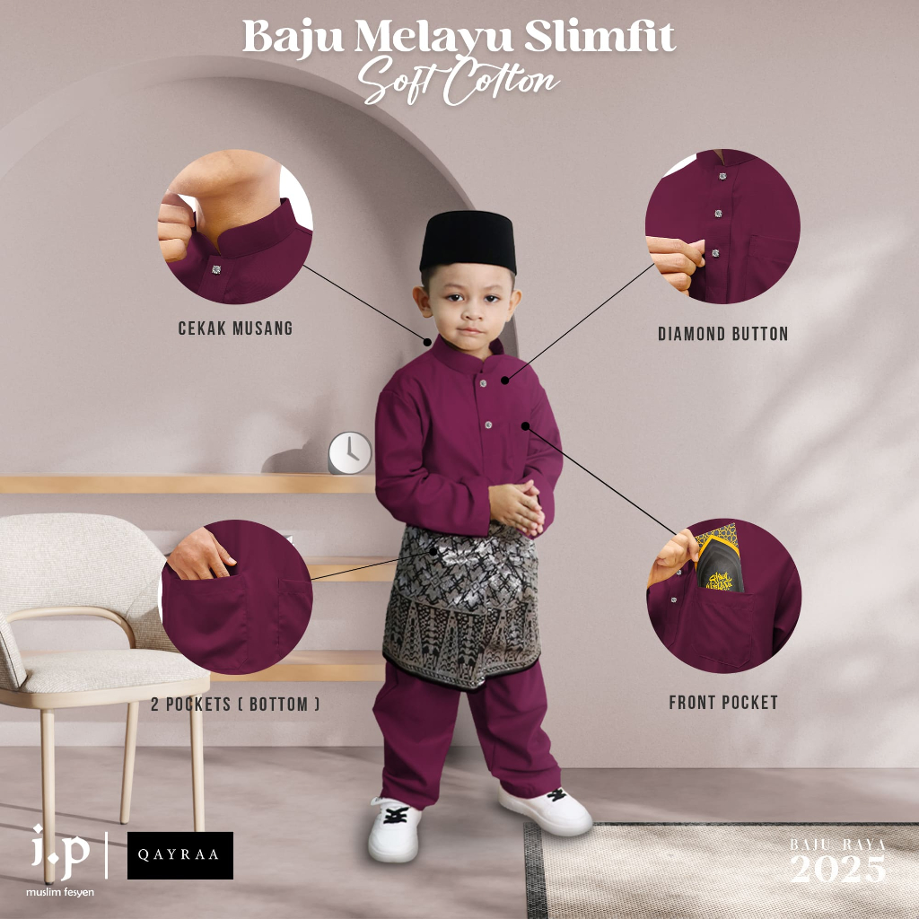 QAYRAA 2025?Maroon Baju Melayu Soft Cotton Slim Fit Cekak Musang Ayah dan Anak Sedondon Family Set - Size 0-4XL