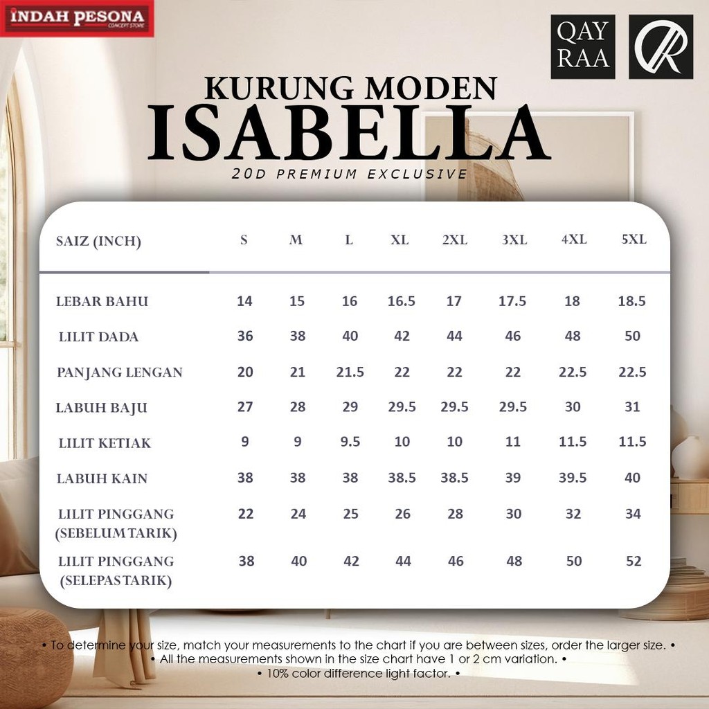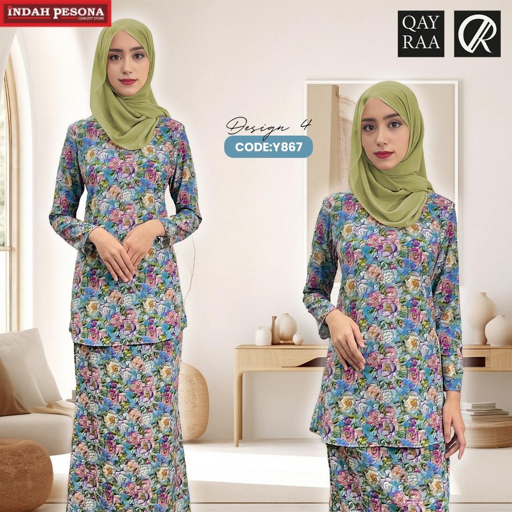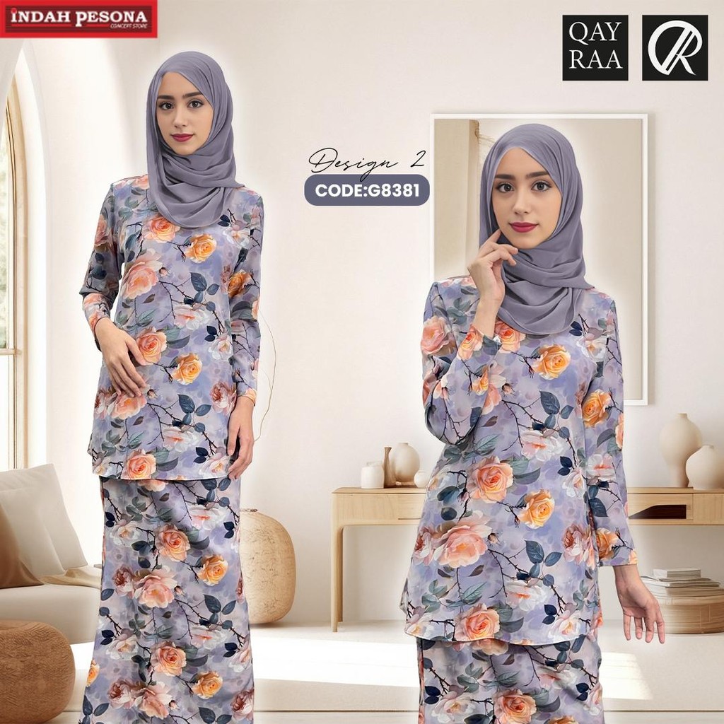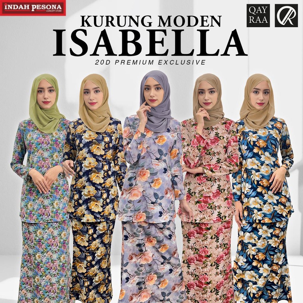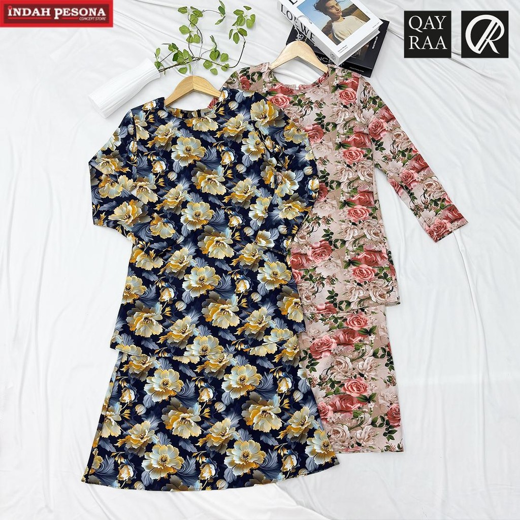 QAYRAA Isabella BAJU KURUNG 20D printing with Zip/Kurung Moden Slim/Ironless /Kurung Kedah Raya Wudhu Set