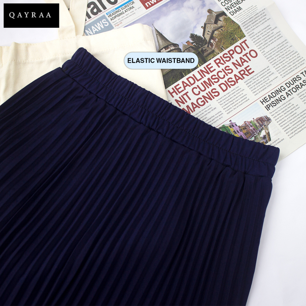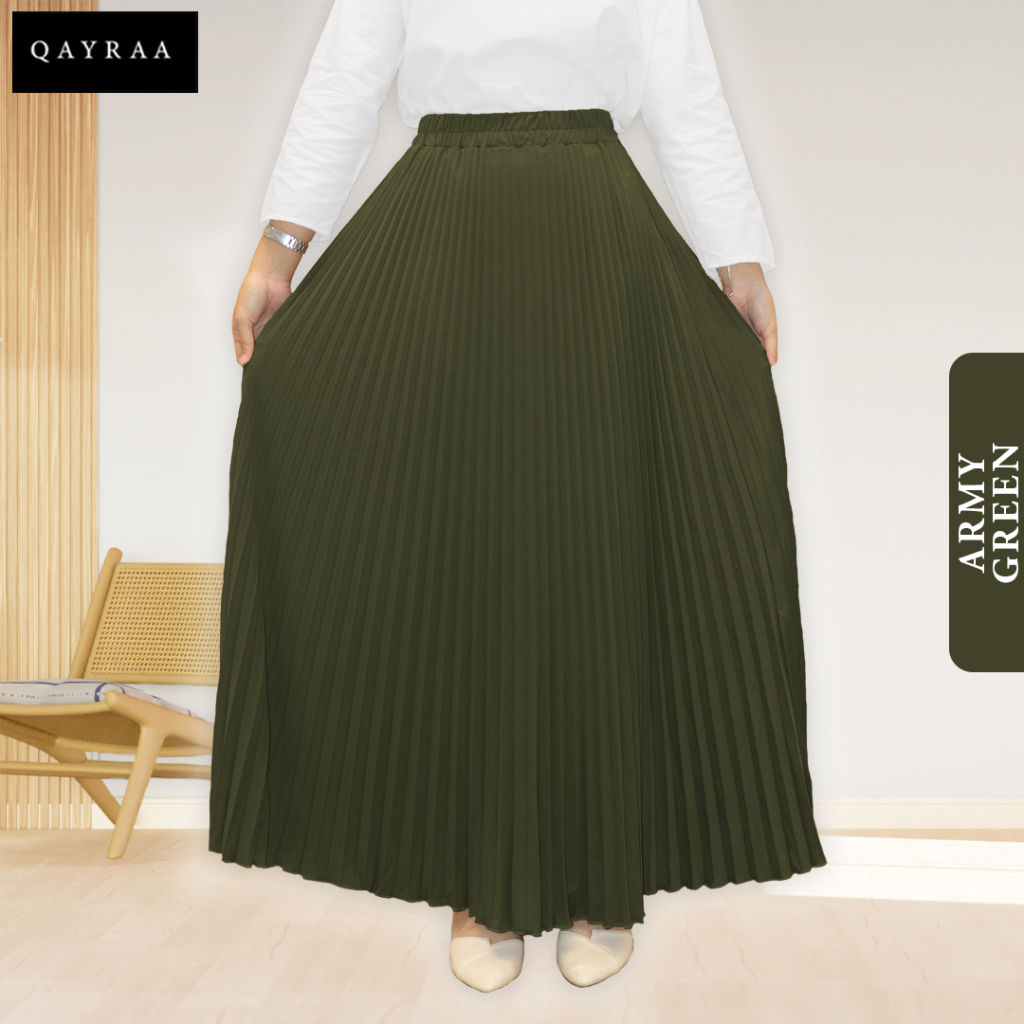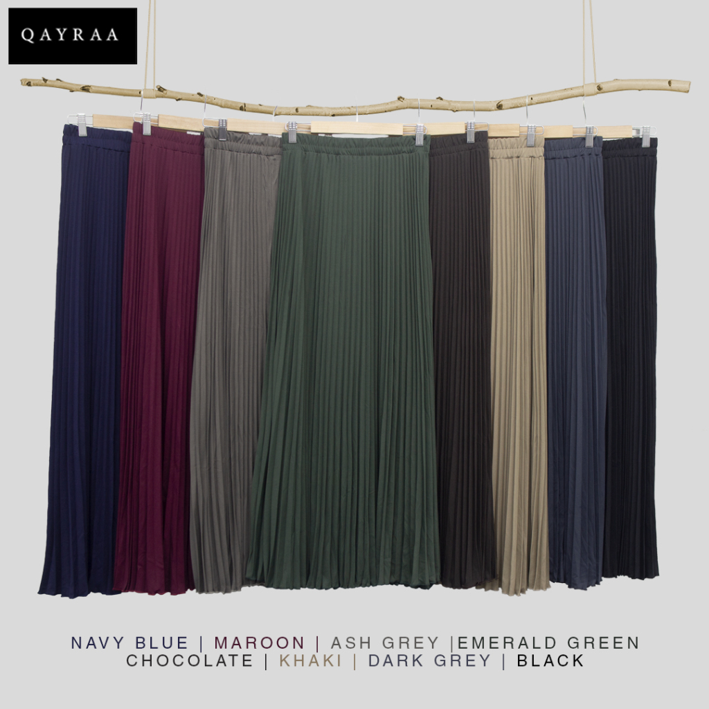 QAYRAA Pleated Skirt Italian Crepe Free Size Skirt - Black/Maroon/Khaki/Army Green/Chocolate