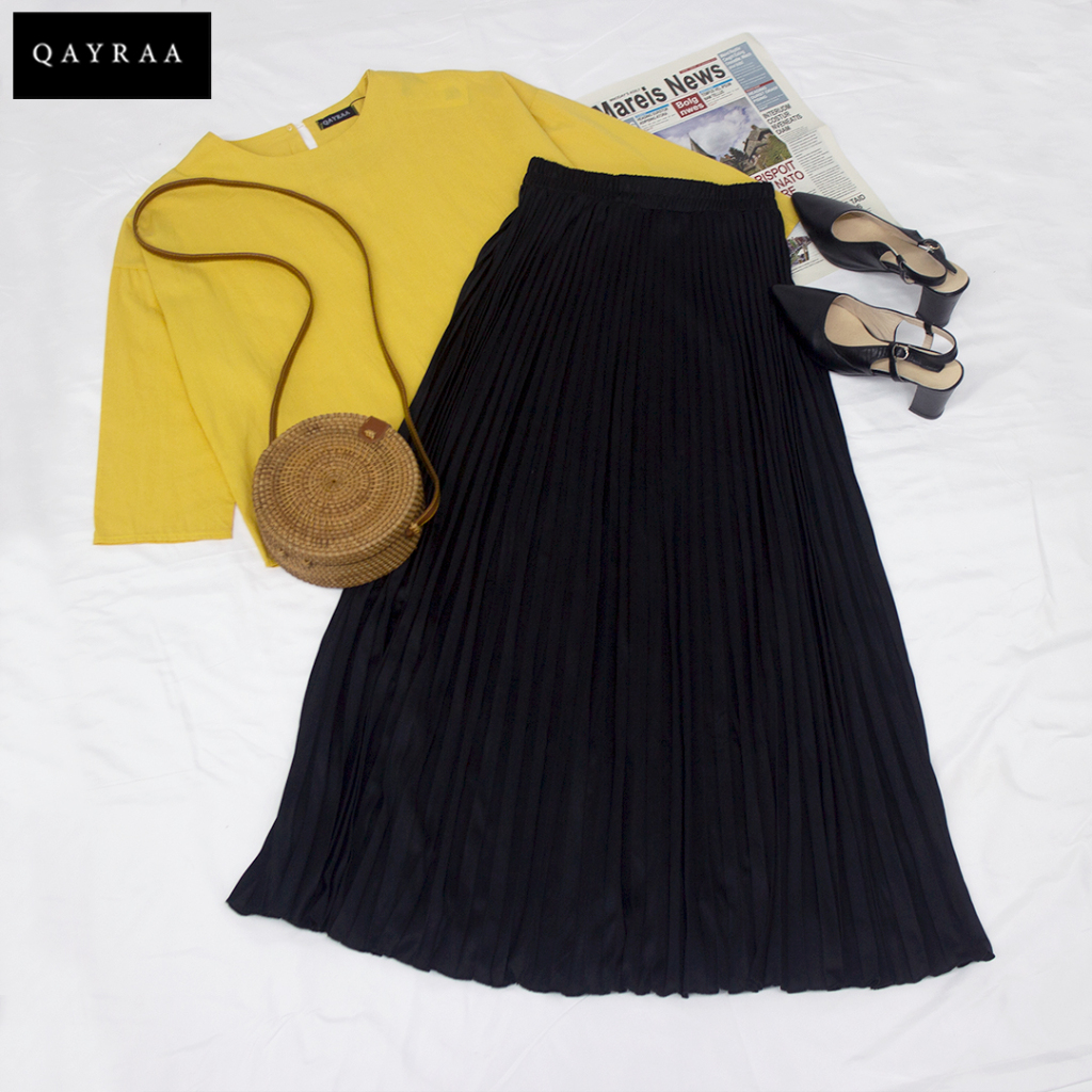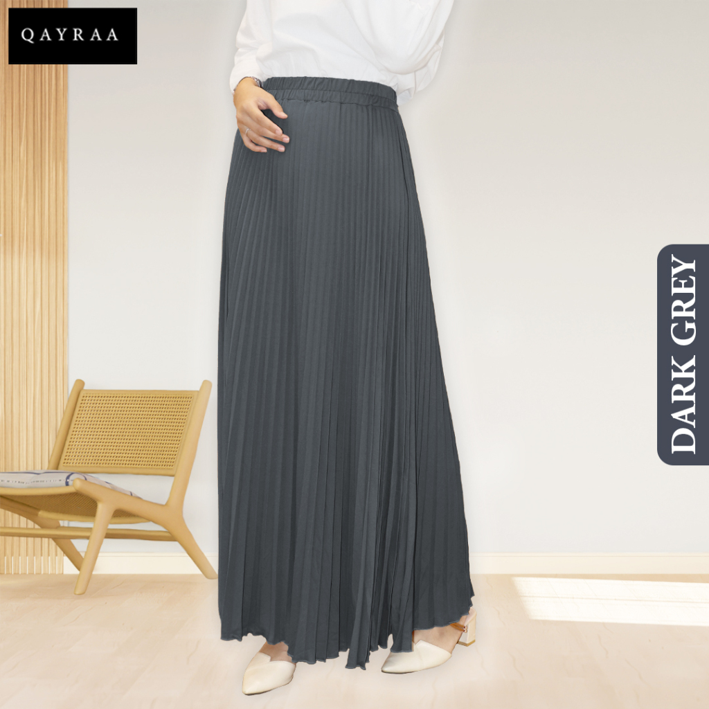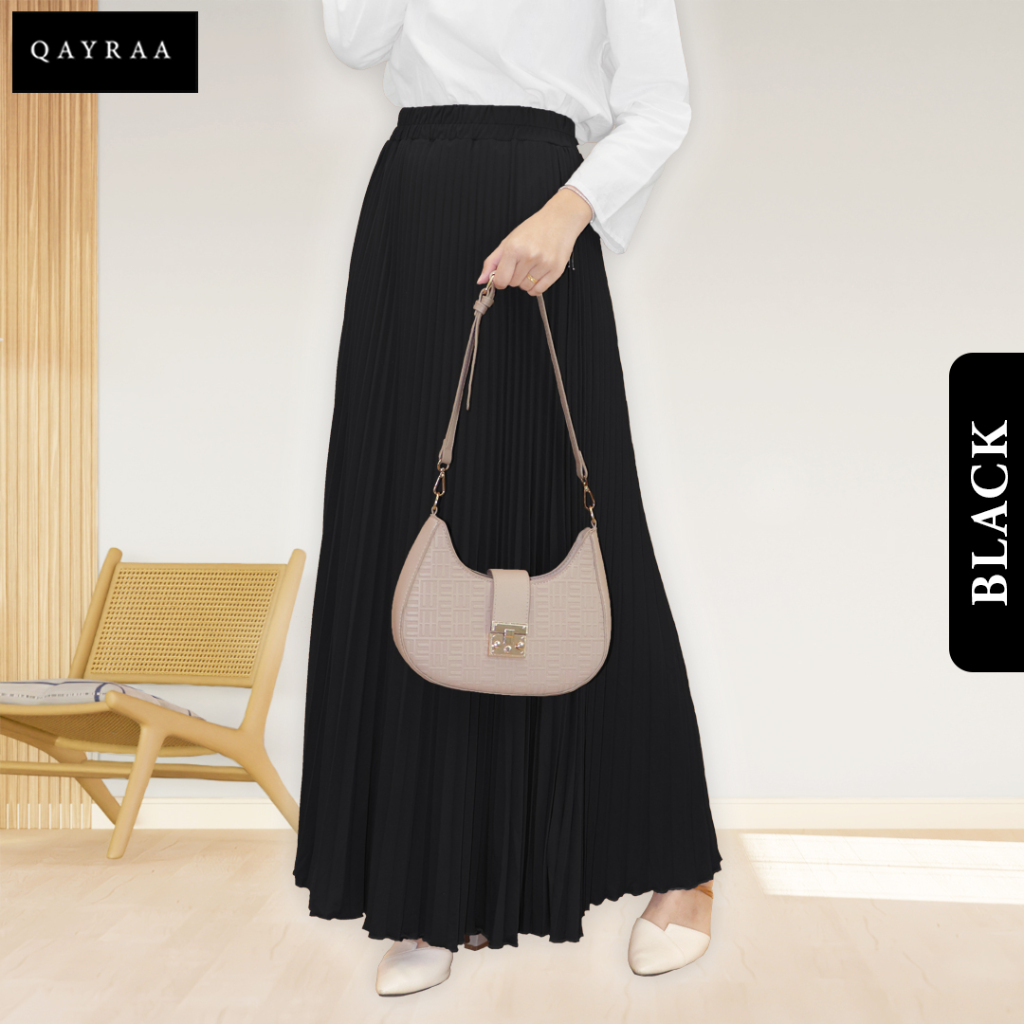 QAYRAA Pleated Skirt Italian Crepe Free Size Skirt - Black/Maroon/Khaki/Army Green/Chocolate
