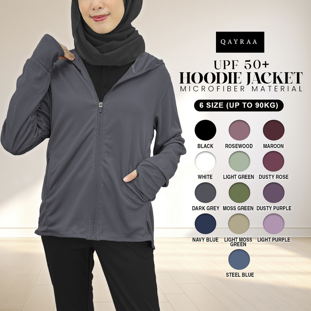 QAYRAA UPF50+ Cap Jacket Jogging Jacket Sport Anti-UV Hoodie /Size S-3XL/Black/Blue/Maroon/Grey/DustyRose/Green/Purple