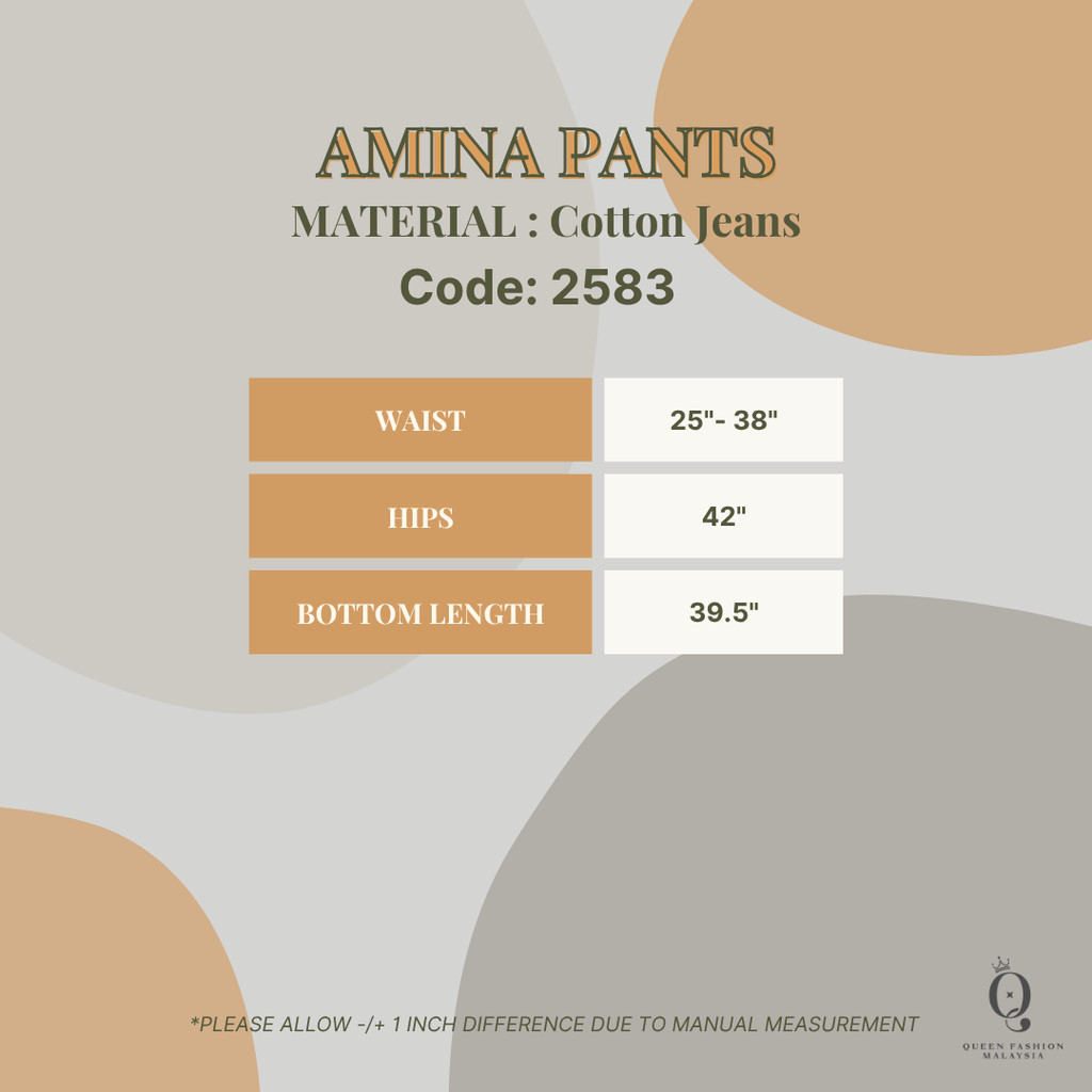 QFM Amina Cotton Jeans Pants (#2583) | Seluar Panjang Wanita Moden Kasual Longgar