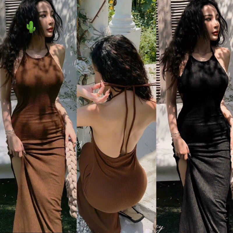 QT -HN Slit Bodycon Dress (with foam) super beautiful long backless dress, flattering sexy female figure - Thien Yet