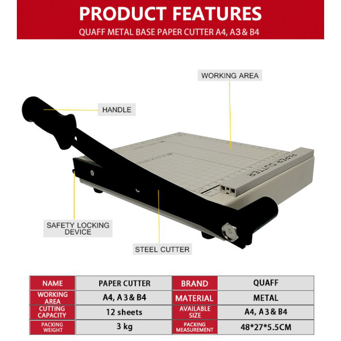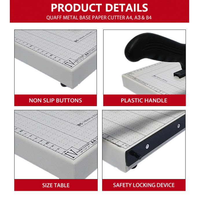 QUAFF Metal Base Paper Cutter Metal Base A4 | A3 | B4 | A5 Size Duty Guillotine Manual Trimmer