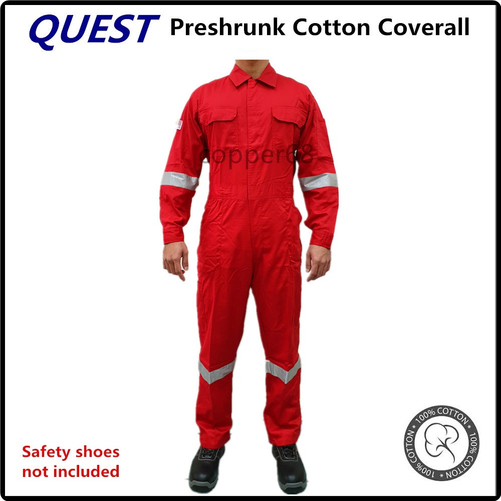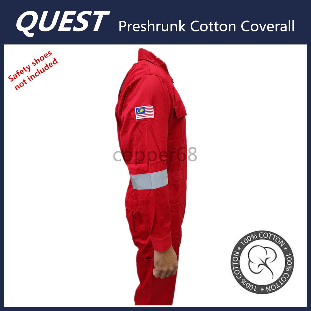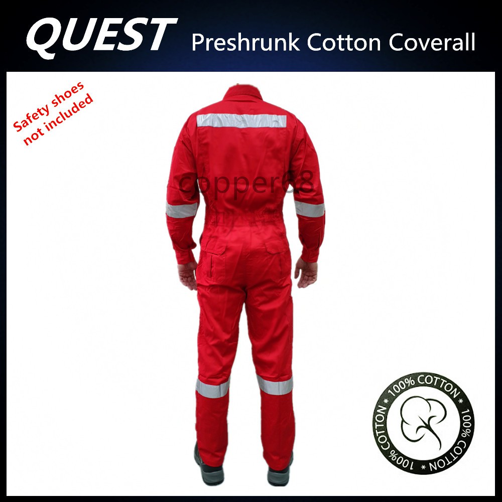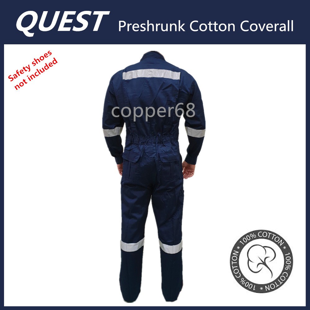 QUEST (Red / Navy Blue) Preshrunk Cotton Safety Coverall with Hi Vis Reflective Workwear Overall Keselamatan 全套工作服