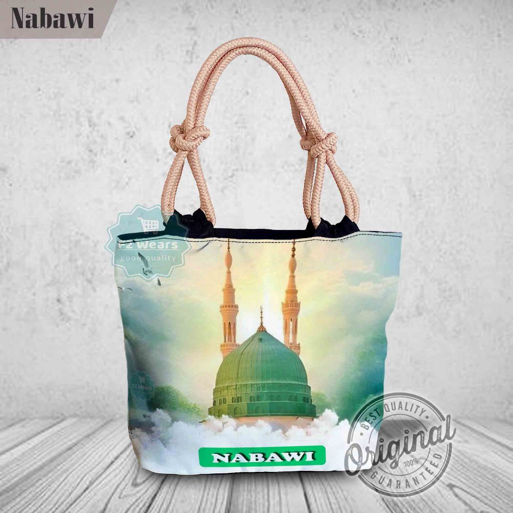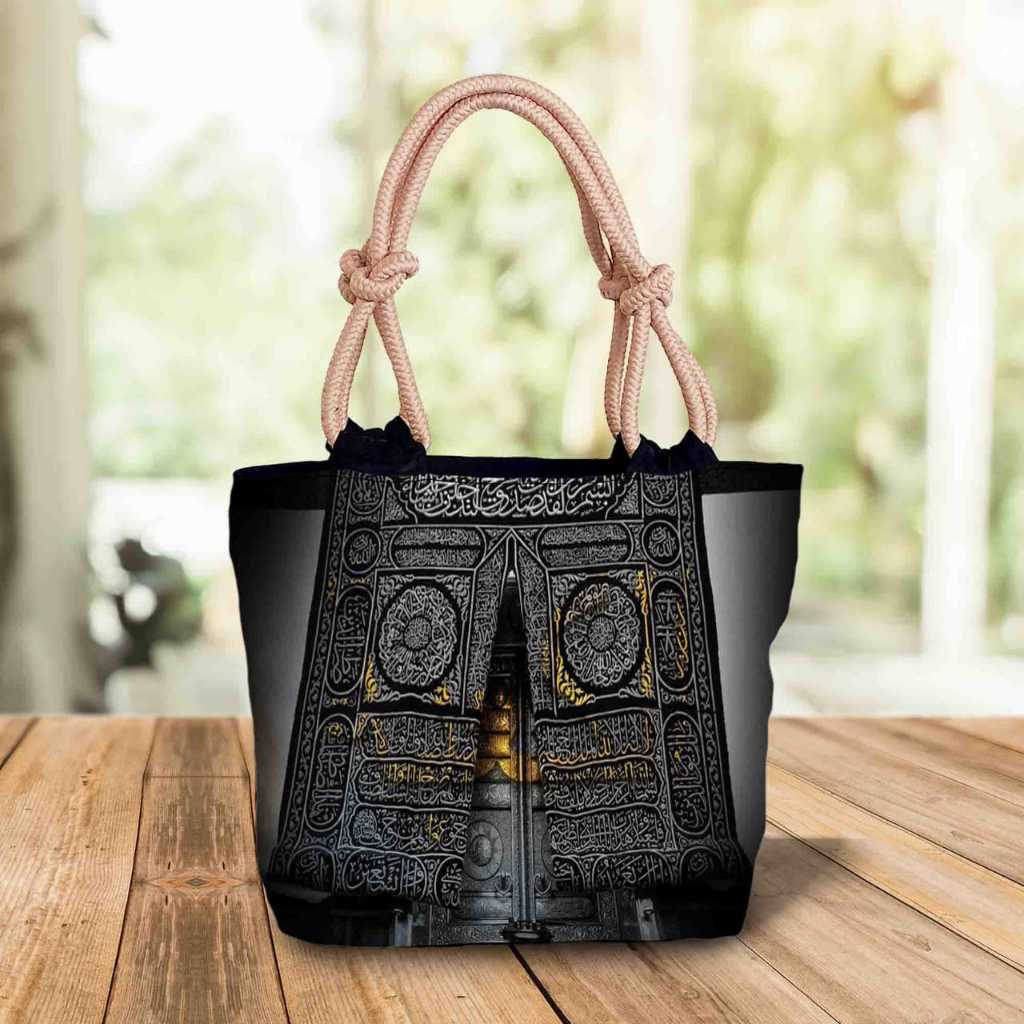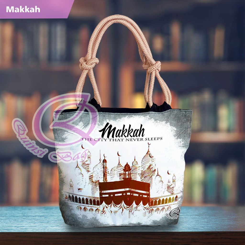 [QuinsiBags] Totebag with Wick Rope, Islamic Arabic Motif Printing Souvenir, Umrah, Hajj, Mecca, Kaaba, Medina, Nabawi