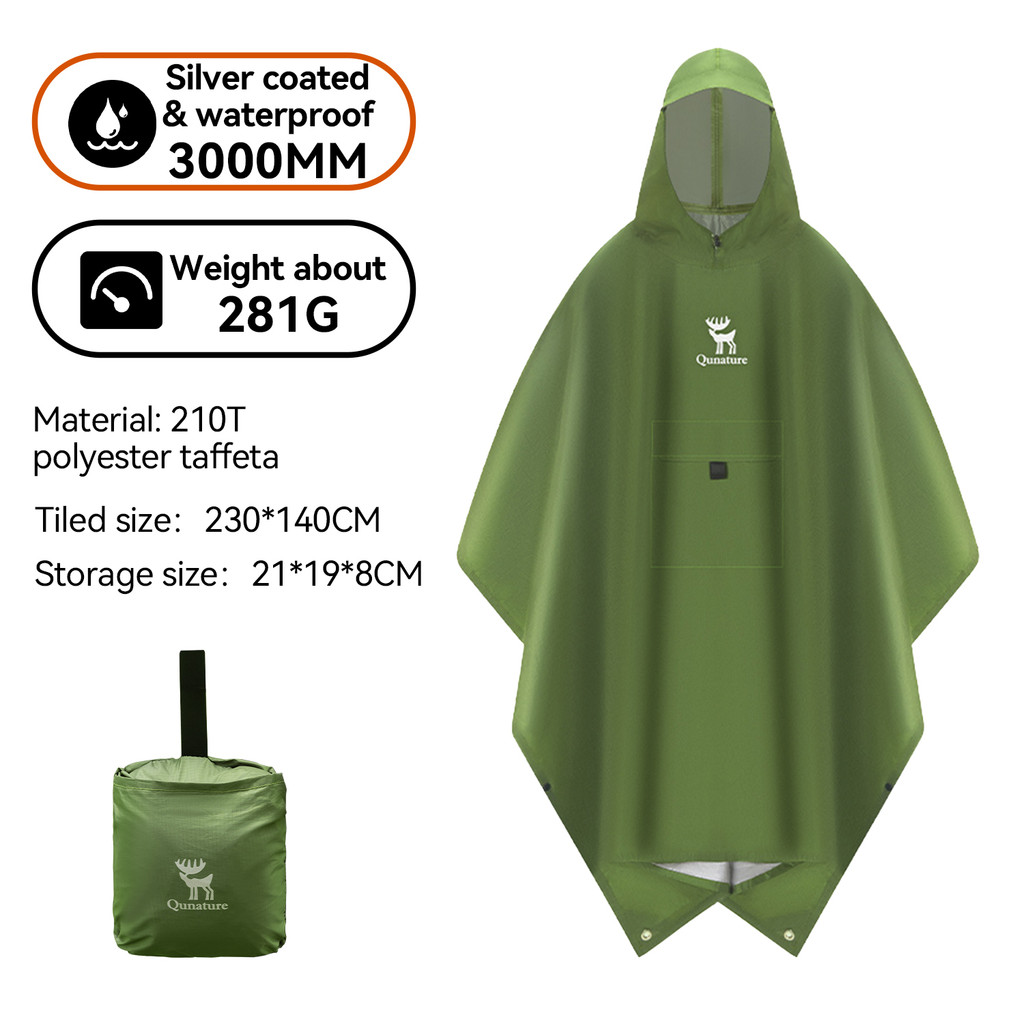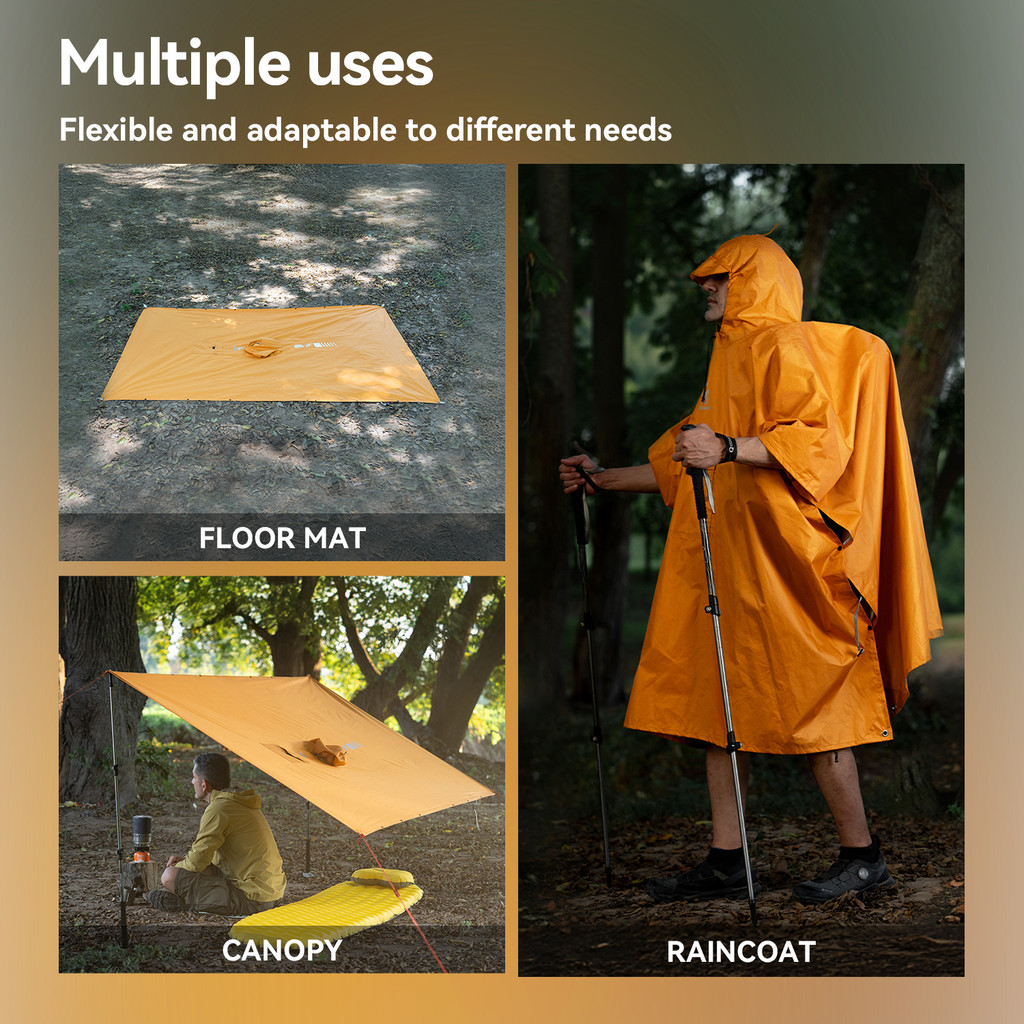 Qunature Multifunctional Waterproof Raincoat Lightweight Lengthened Motorcycle Raincoat 3 in 1 Picnic Mat Canopy Cloak Suitable for Outdoor Hiking Sports