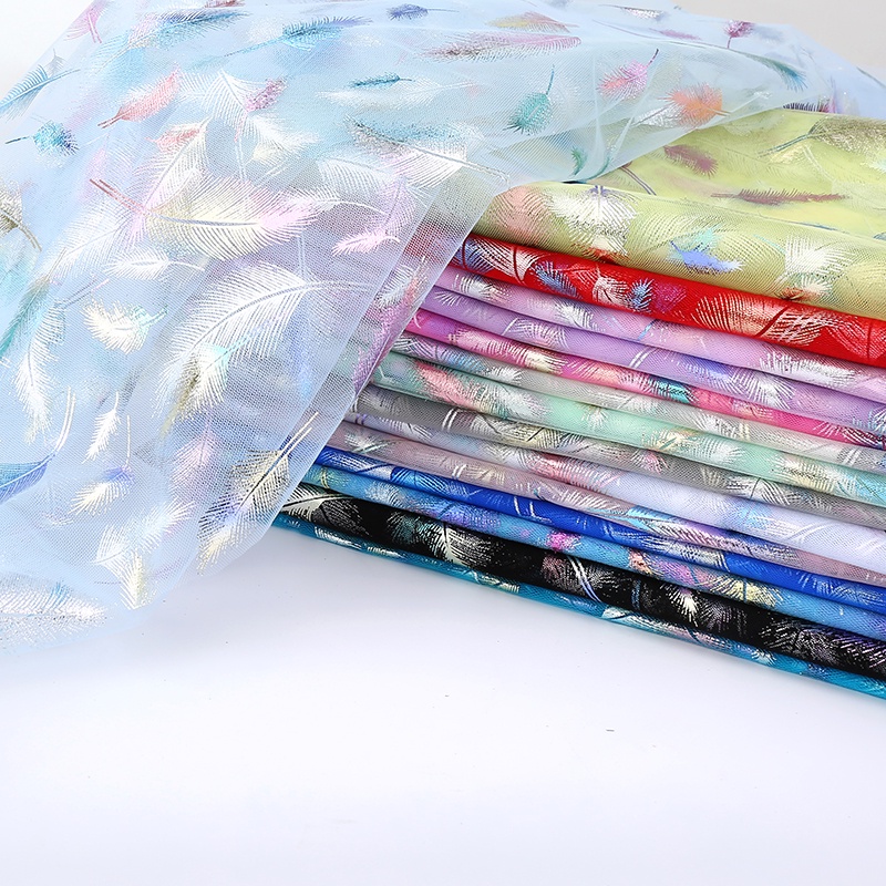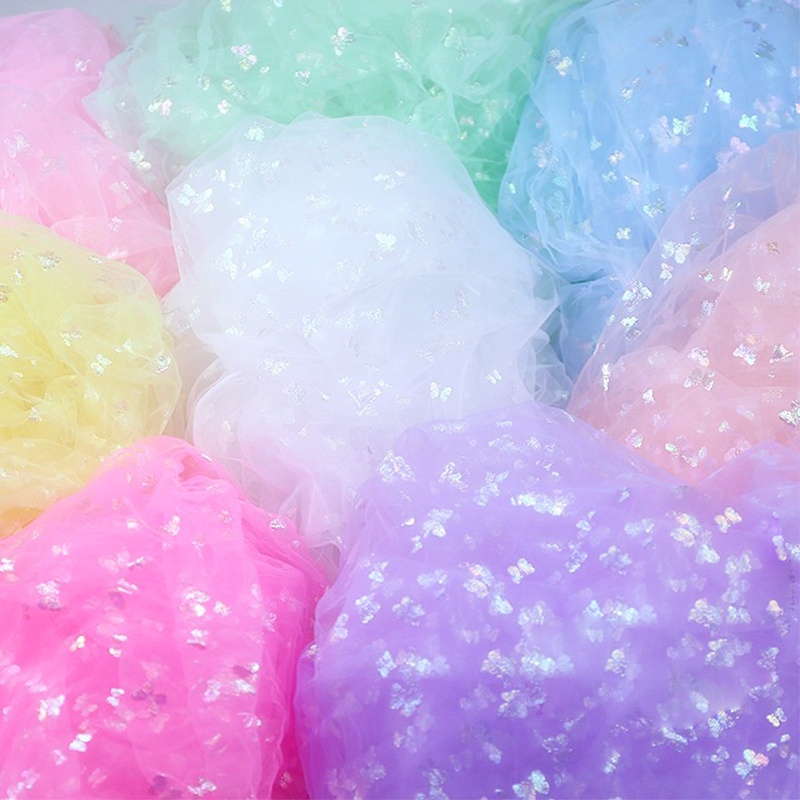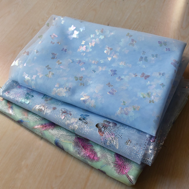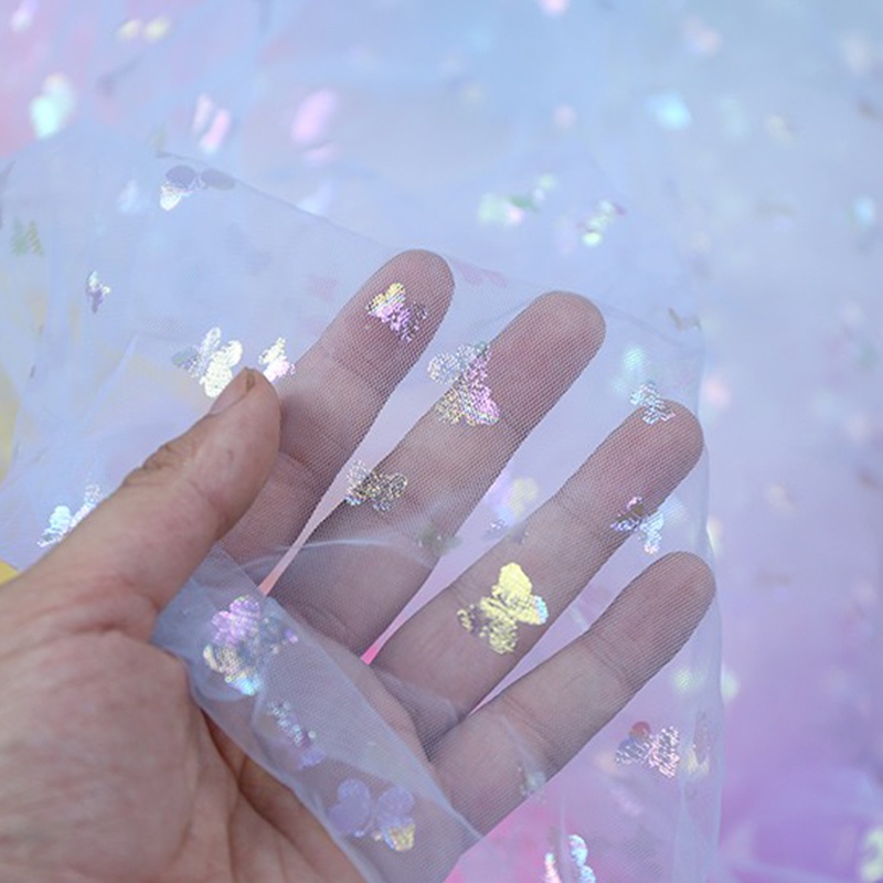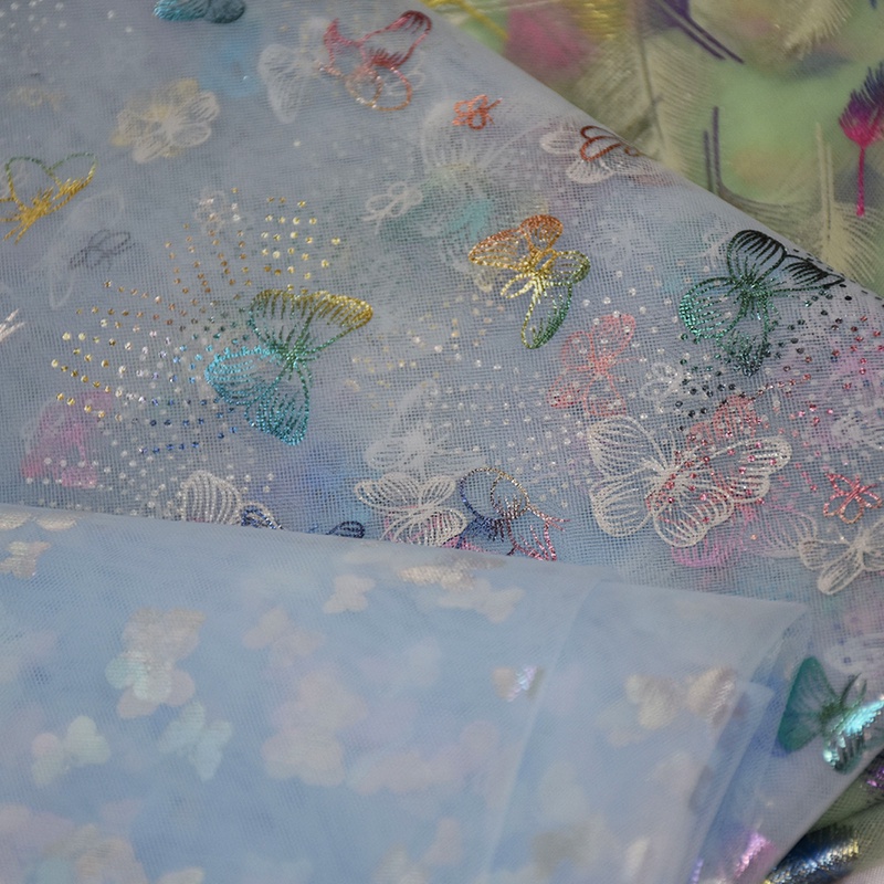 Rainbow Butterfly Printing Tulle Fabric For Sewing Wedding Dress Stage Clothing Background Decoration Bronzing Mesh Cloth