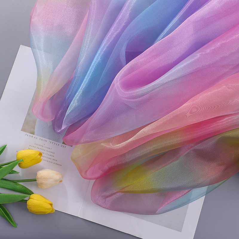 Rainbow gradient color organza material wedding gauze gauze fashion tulle clothing fabric