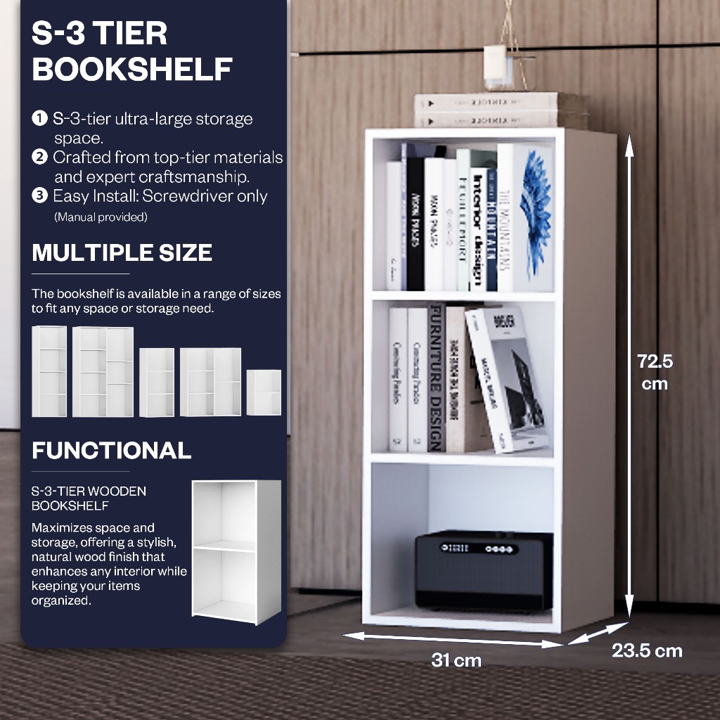 Rak Buku 3 Tingkat 3 Tier Bookshelf (S) my-com/DIY Utility Shelf/Multipurpose Shelf/Wood Shelf