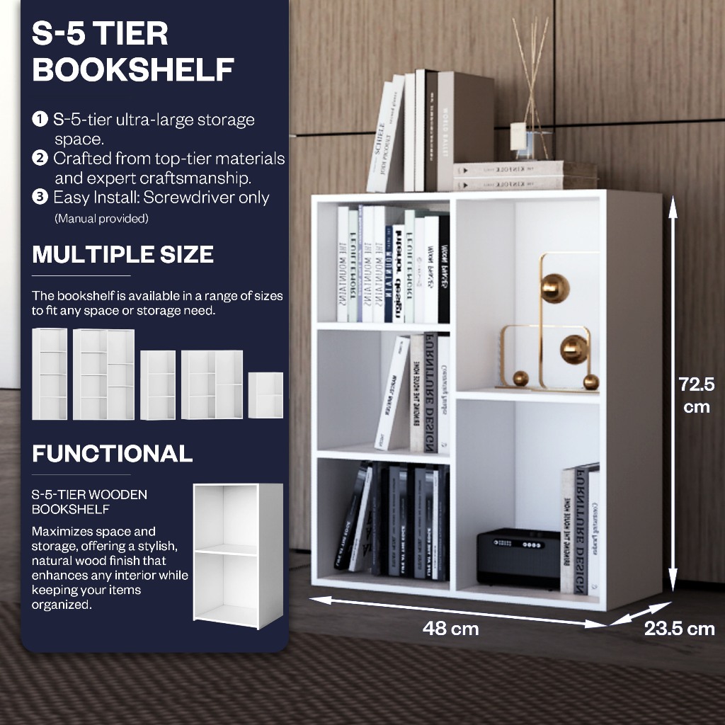 Rak Buku 5 Tingkat/5 Tier Bookshelf (S) my-com/DIY Utility Shelf/Multipurpose Shelf/Wood Shelf