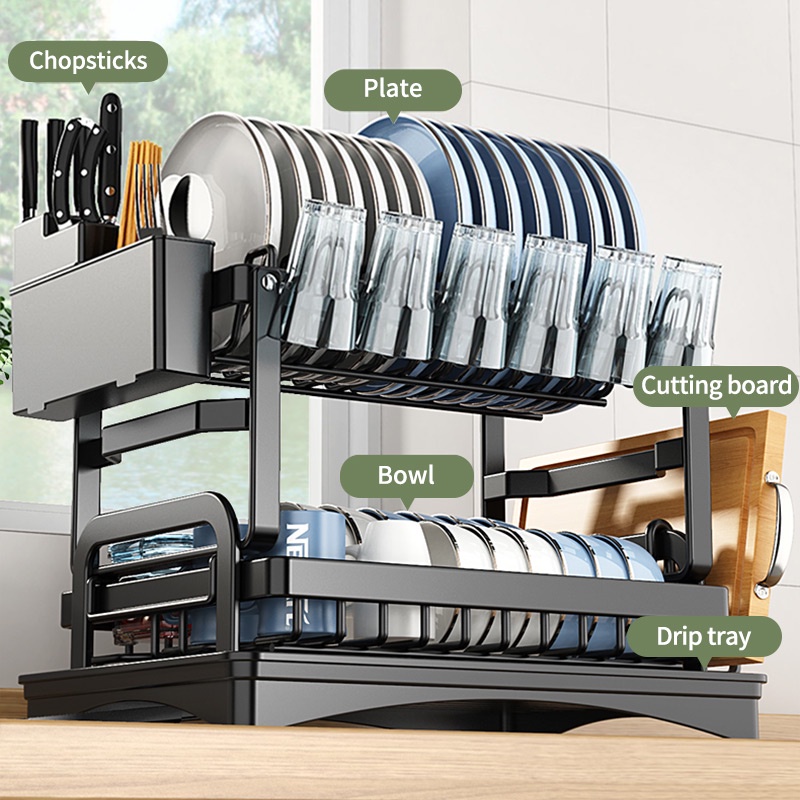 Rak Pinggan Drainer Tray Kitchen Organizer Storage Rack Sinki Rak Pinggan Mangkuk Rak Dapur