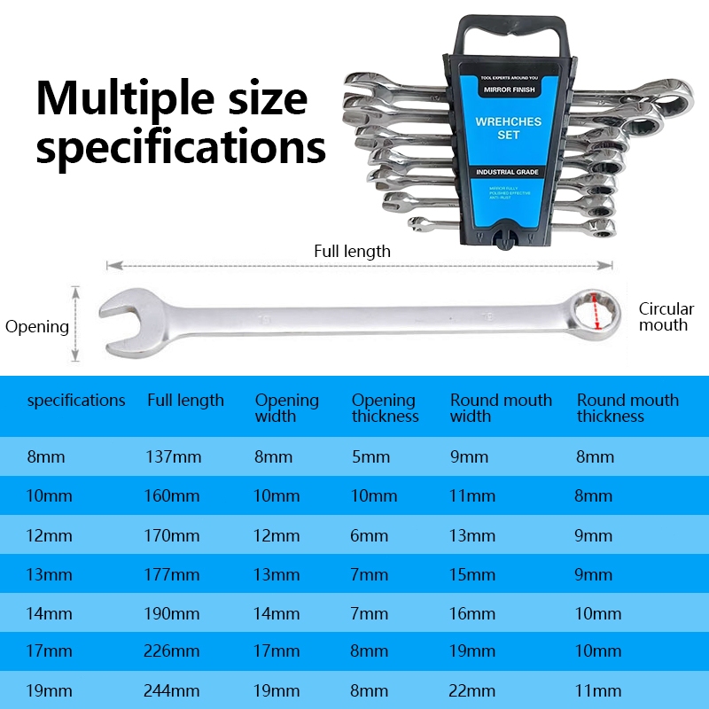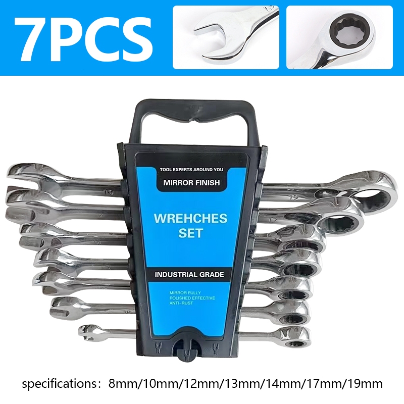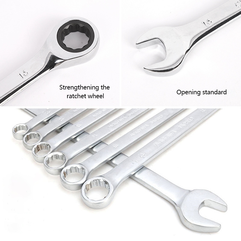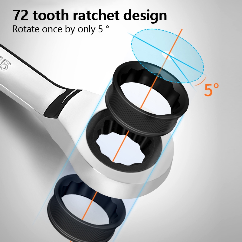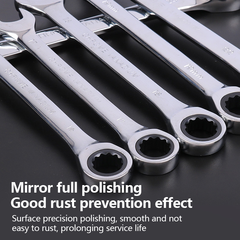 ?Ratchet Geared Wrench CR-V 8mm-24mm Heavy Duty Combination Spanner Set 72 Teeth Repair Hand Tool Chrome Vanadium Steel