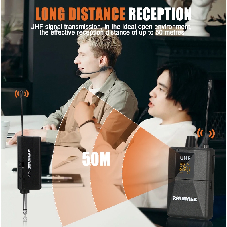 RAYHAYES UHF Headset Microphone Wireless Lavalier Lapel Mic with Bodypack Transmitter For Teaching