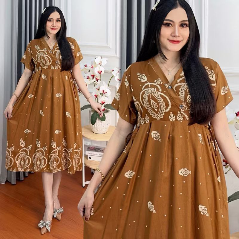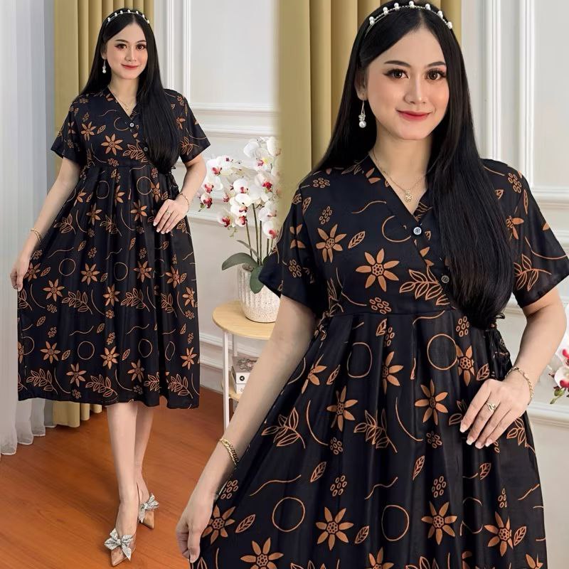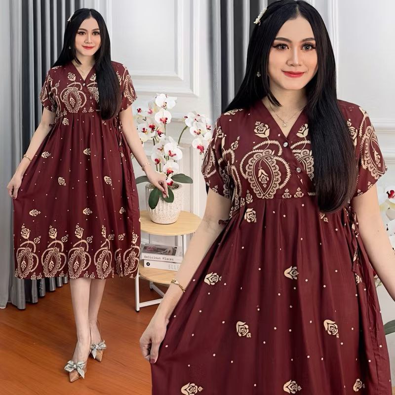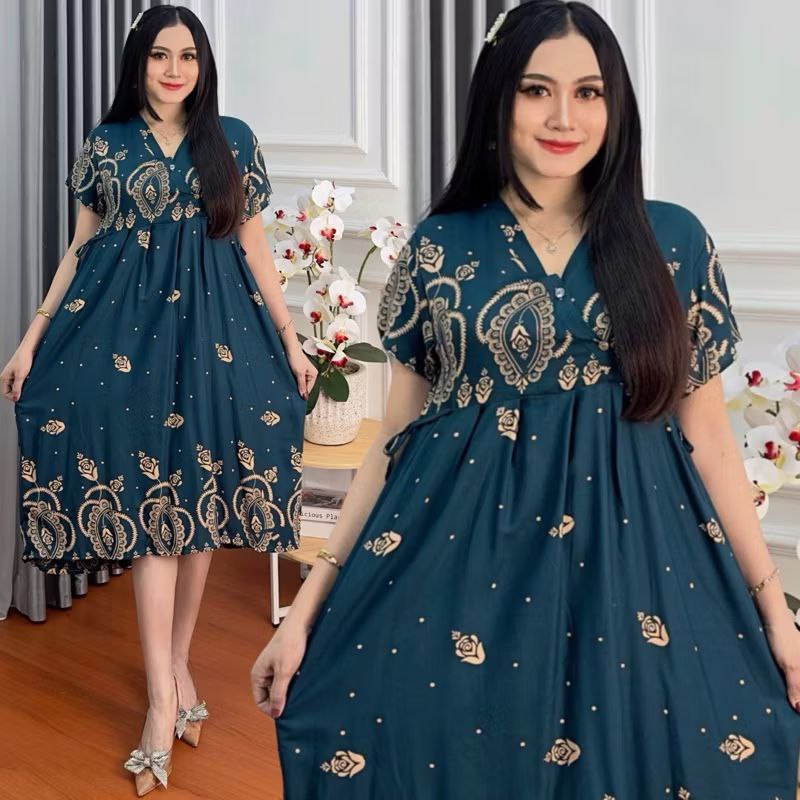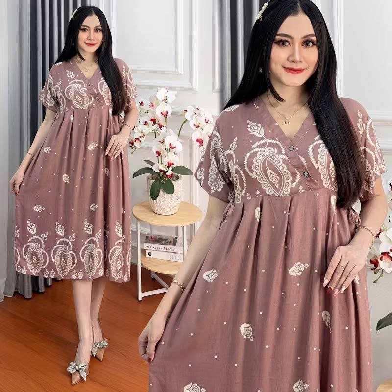 Rayon Kimono Daster LD 110 Front Buttons Nursing Dress Women Side Straps