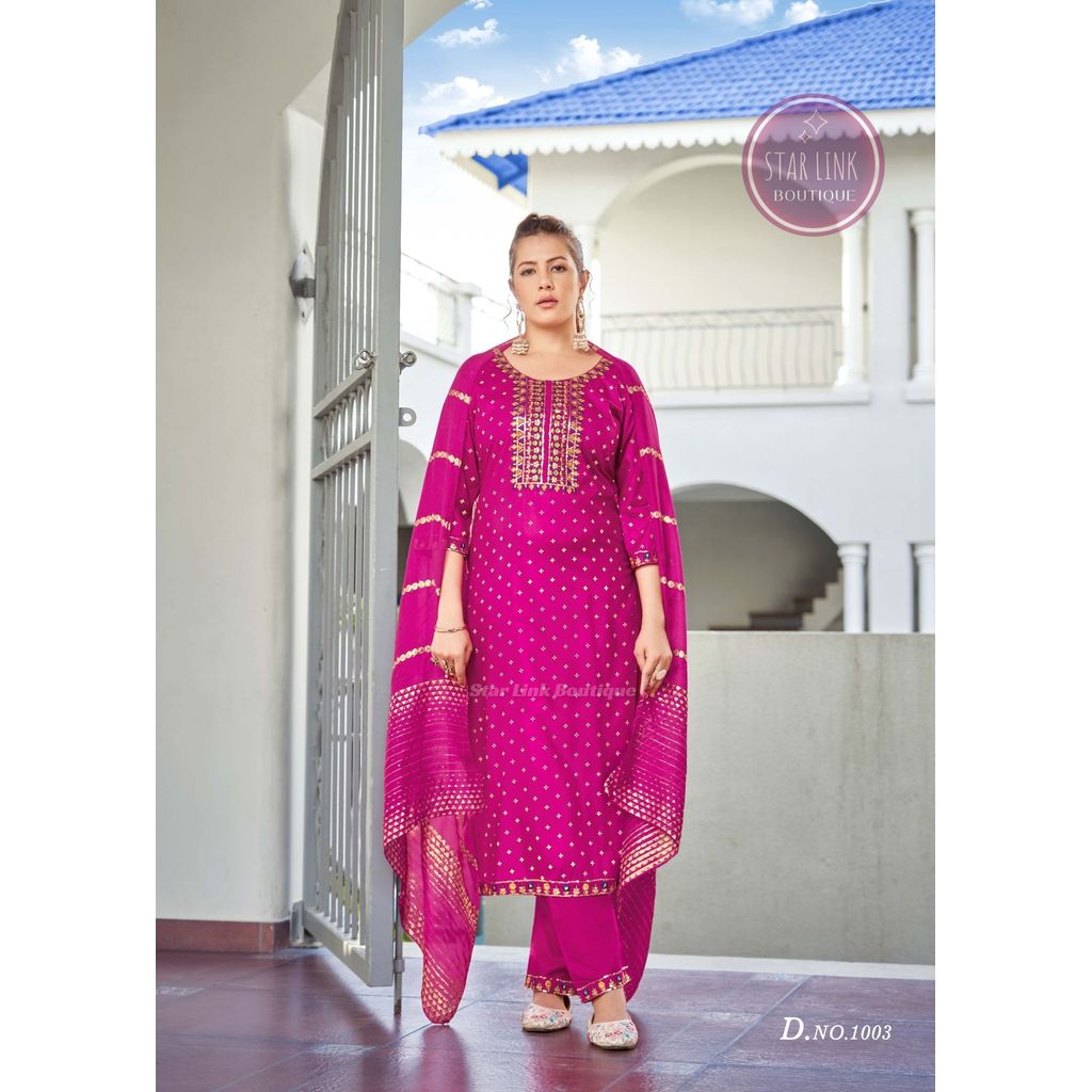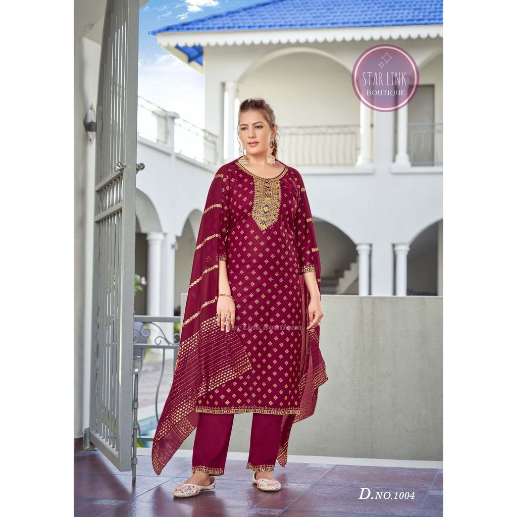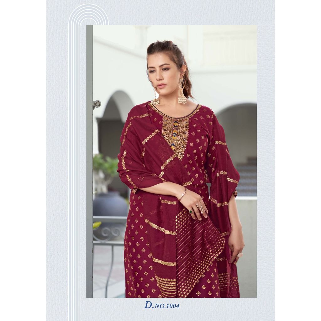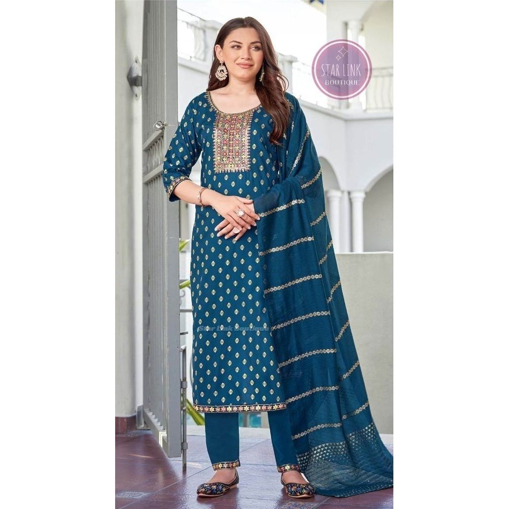 Rayon Plus Size Daily Wear Embroidery Work Kurti With Pants & Dupatta