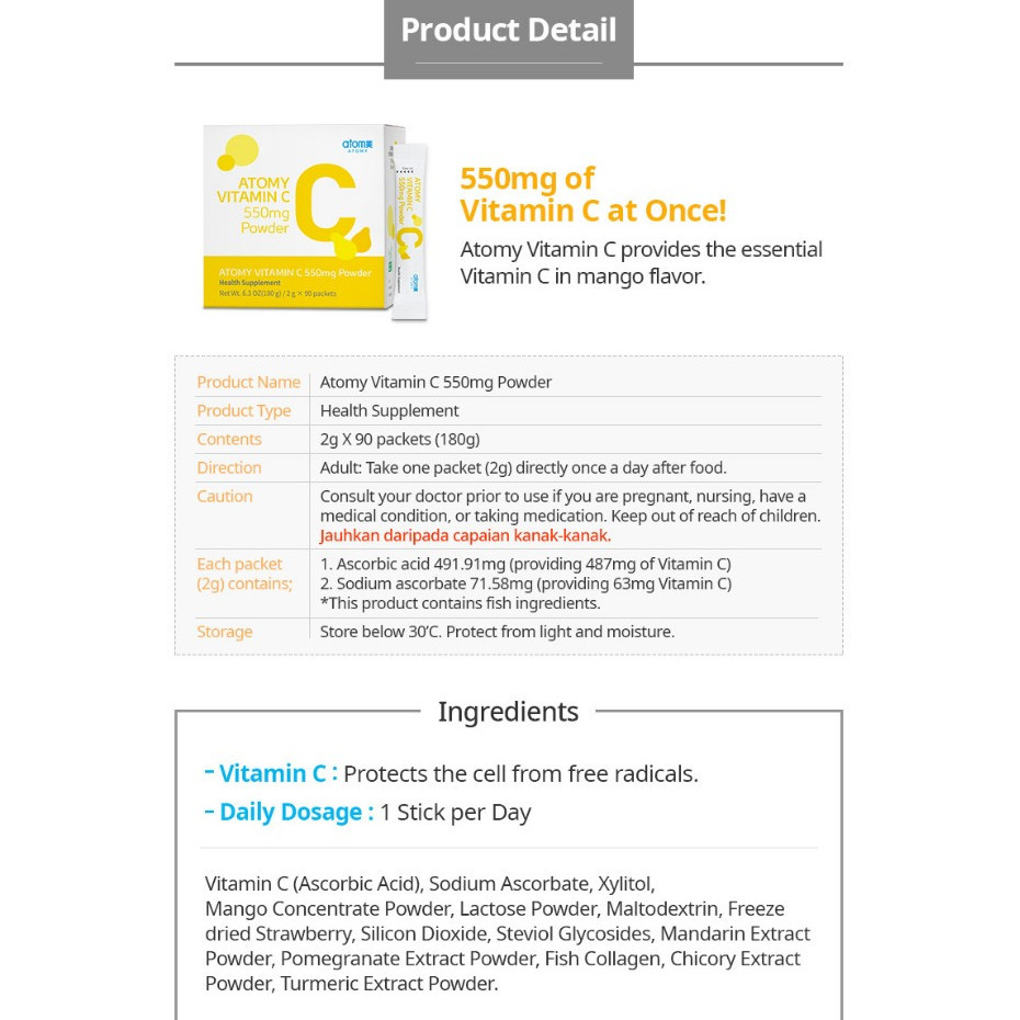 ?Ready Stock 100% Authentic? Atomy Vitamin C 500mg/550mg Powder 艾多美维生素C颗粒 500mg/550mg