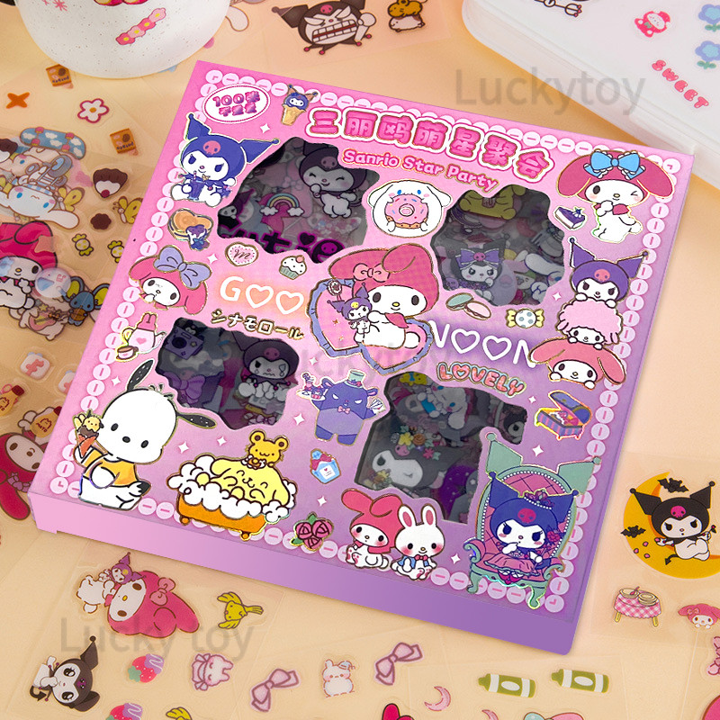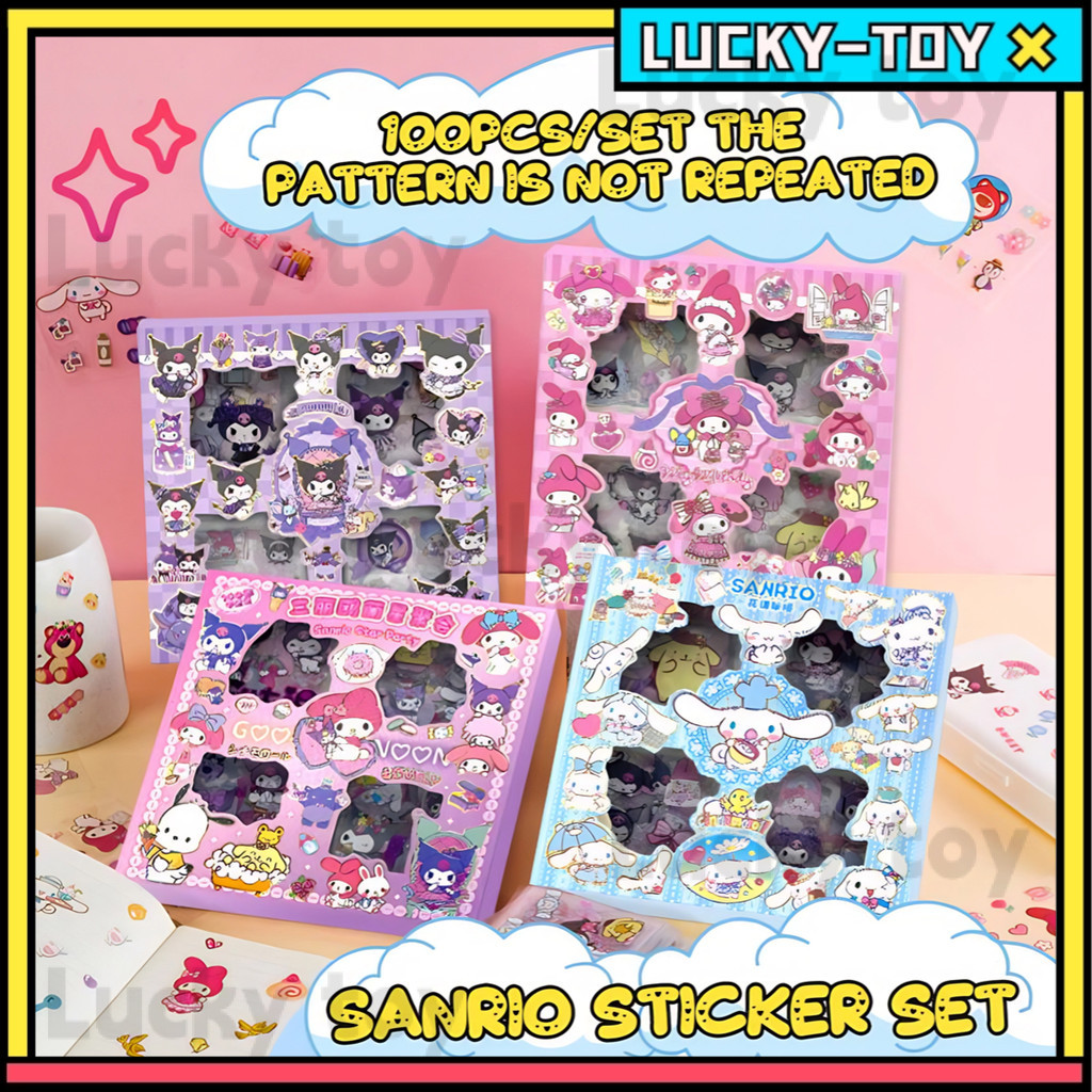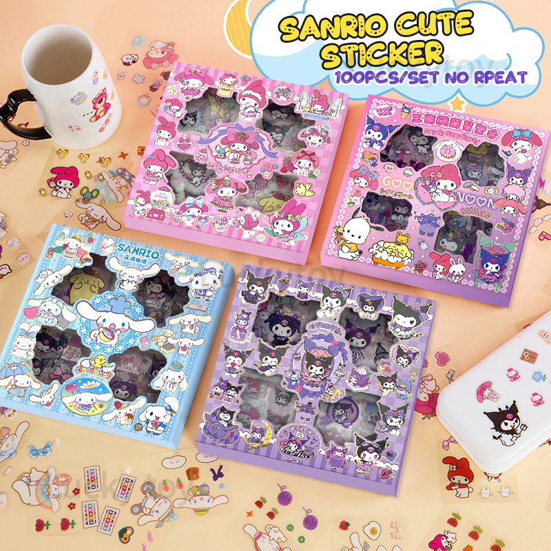 【Ready Stock ??】100pcs/Set Kuromi Sticker Box For Kids Girls Sanrio Cute Set DIY Gift Box Cinnamoroll Melody Cartoon Stickers Box Waterproof Cute Sticker