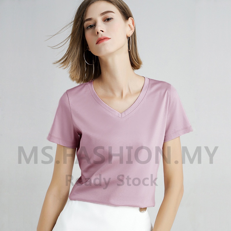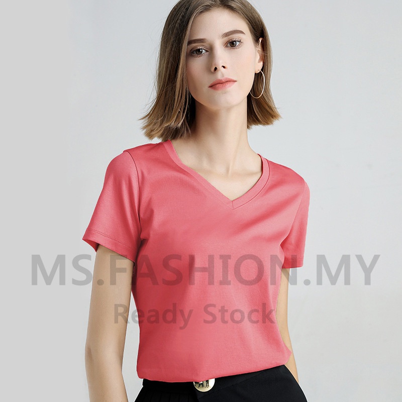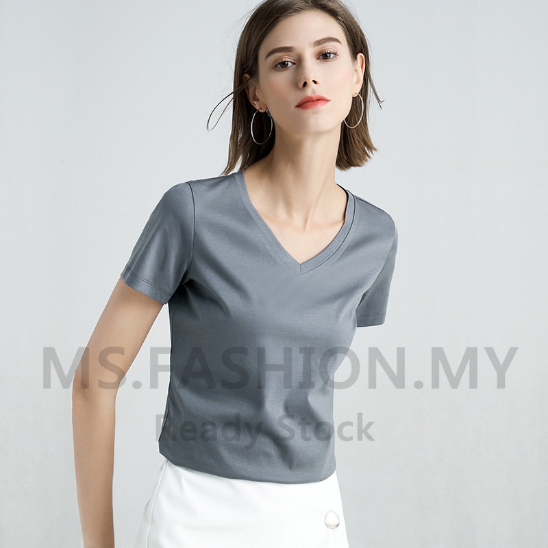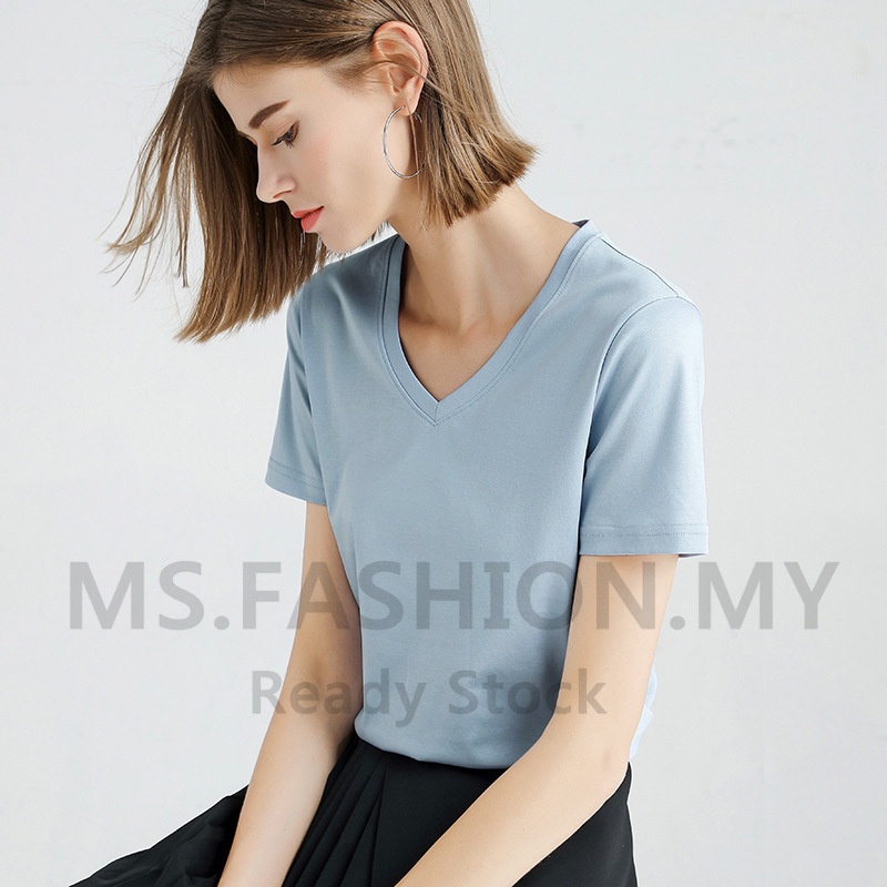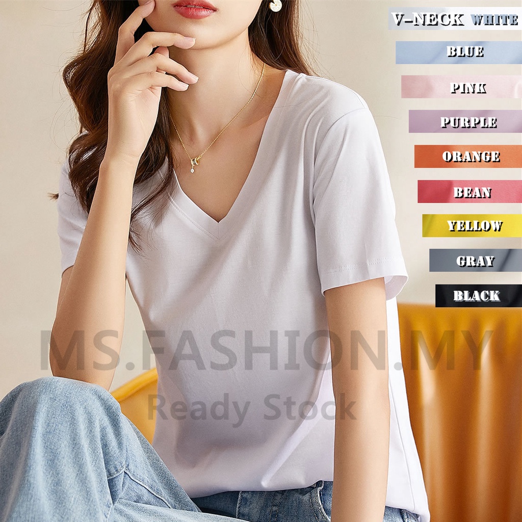 ?READY STOCK?2023 new Women T shirt Short sleeved V neck T-shirt female summer slim Lovers t-shirt wild bottoming top