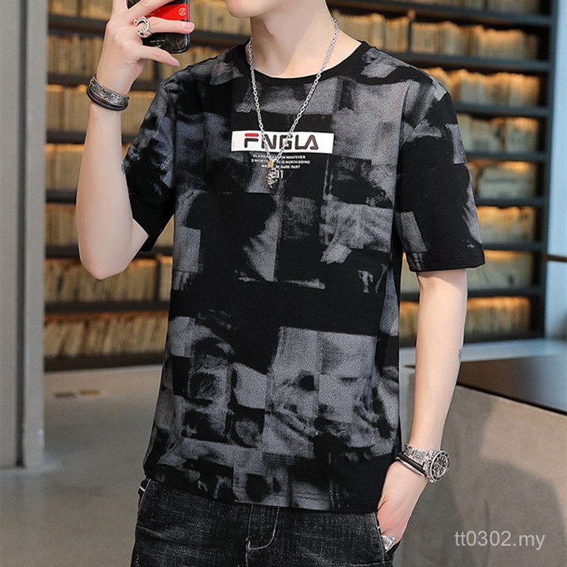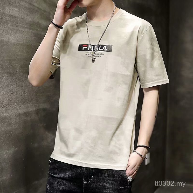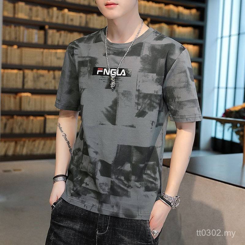✨READY STOCK✨2025夏季新款男士短袖圆领T恤ins潮流情侣装休闲印花上衣外贸Men's short sleeve T-shirt T-shirt lengan pendek lelaki
