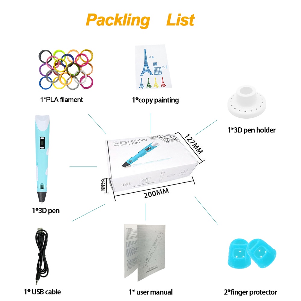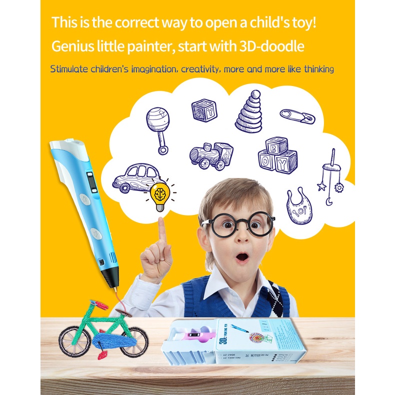 【READY STOCK】3D Printing Pen LCD Screen PLA Printing Doodle Arts Craft Drawing USB Pen Set Educational Gifts