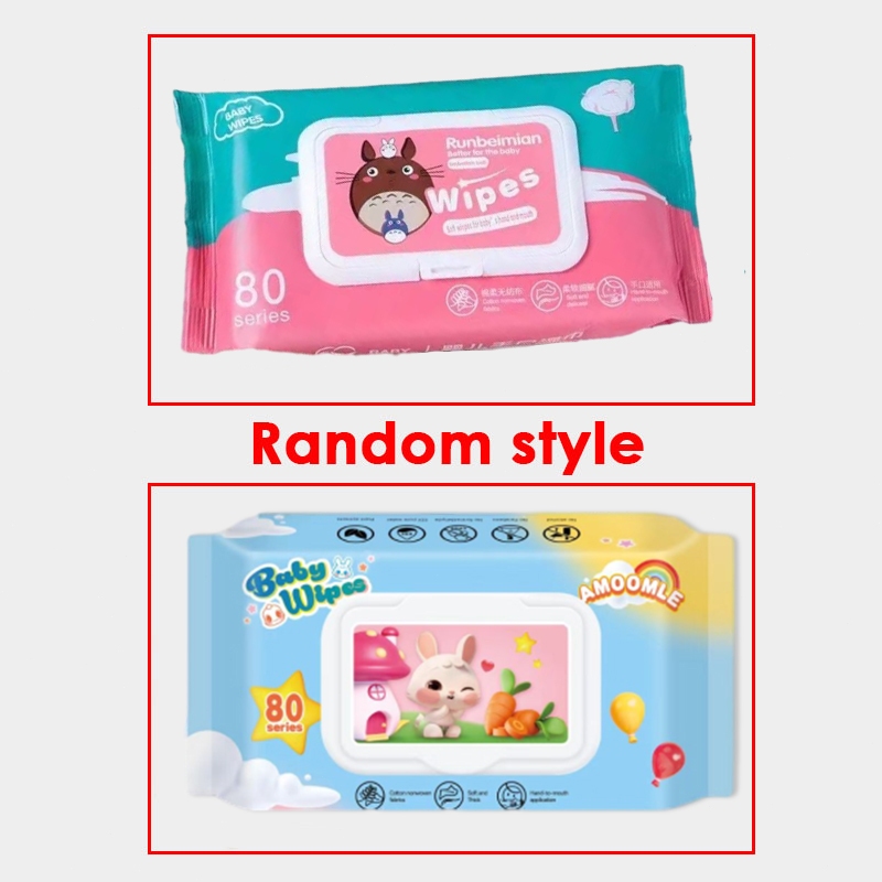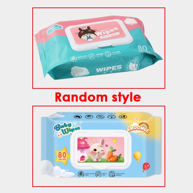 【Ready Stock】80/10PCS Premium Baby Wet Wipes Tisu Basah Wet Tissue With Cover Non-Alcohol Parabens Free Fragrance Free