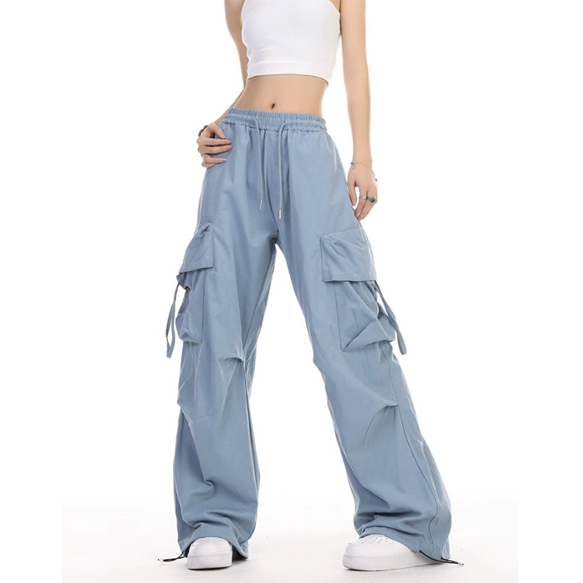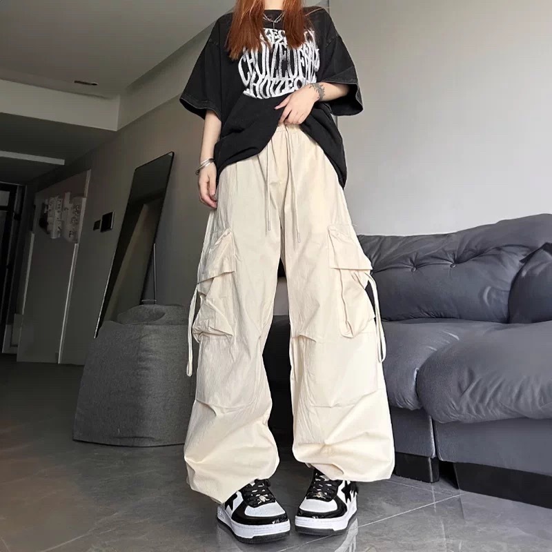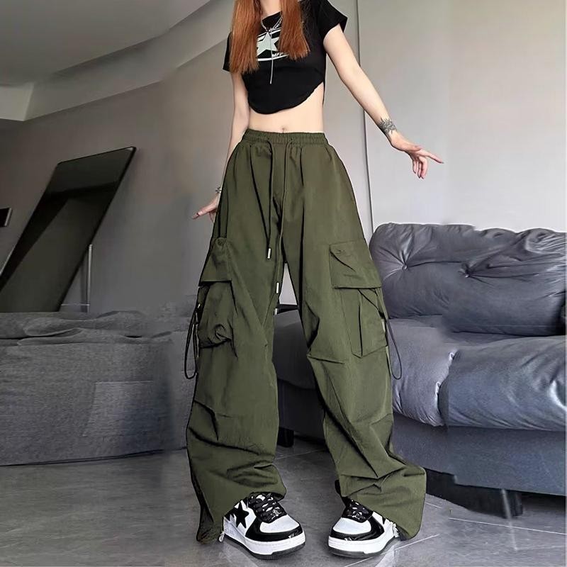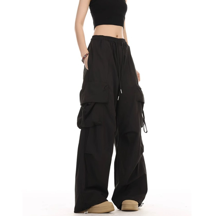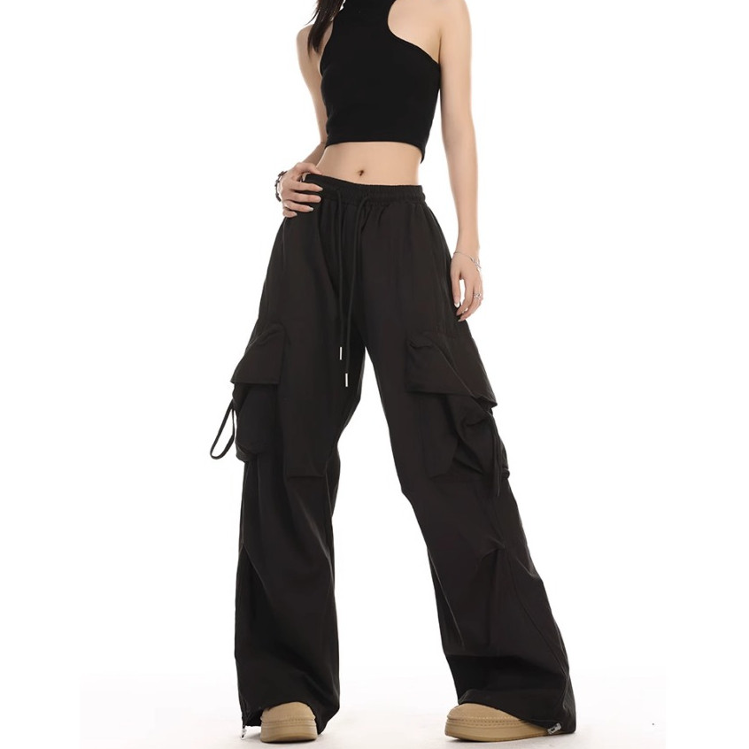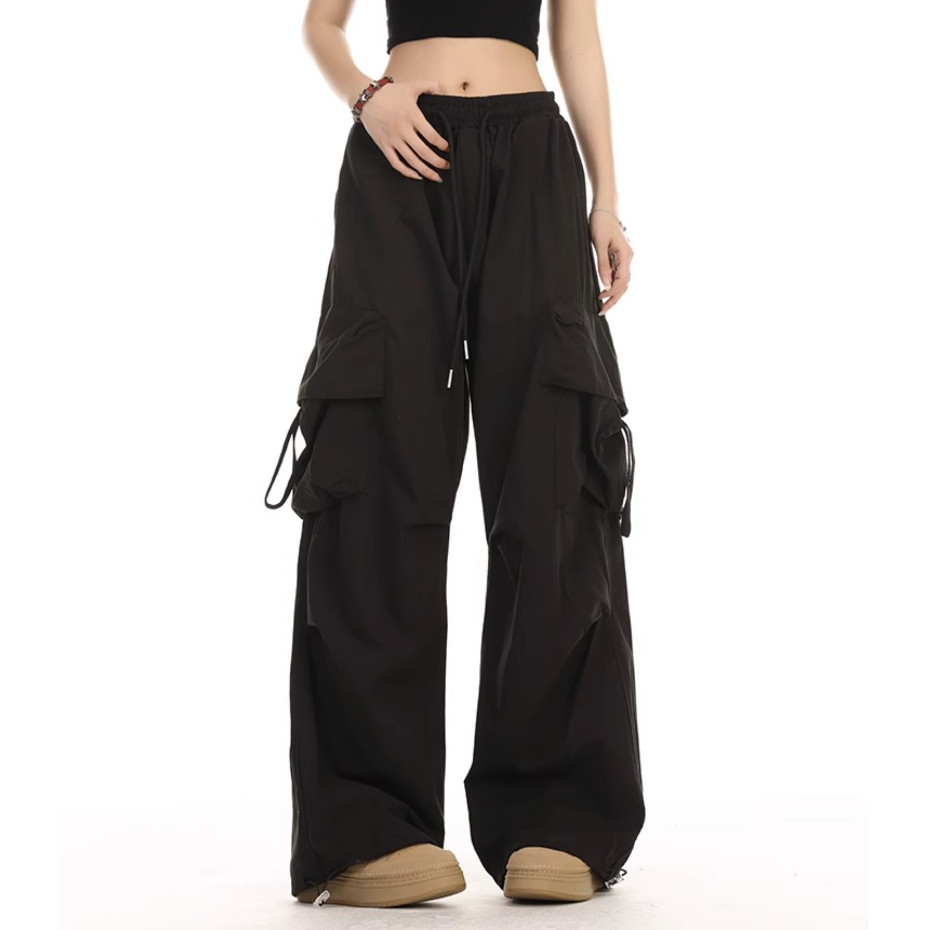 【READY STOCK AT Johor】 Hotgirl⭐Black Cargo Pocket Drawstring Pant Casual Long Pant For Women Retro Fashion(SIZE: S-3XL)