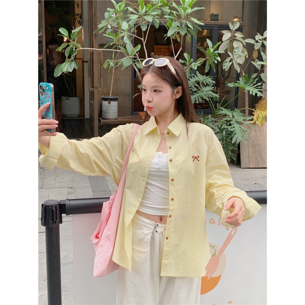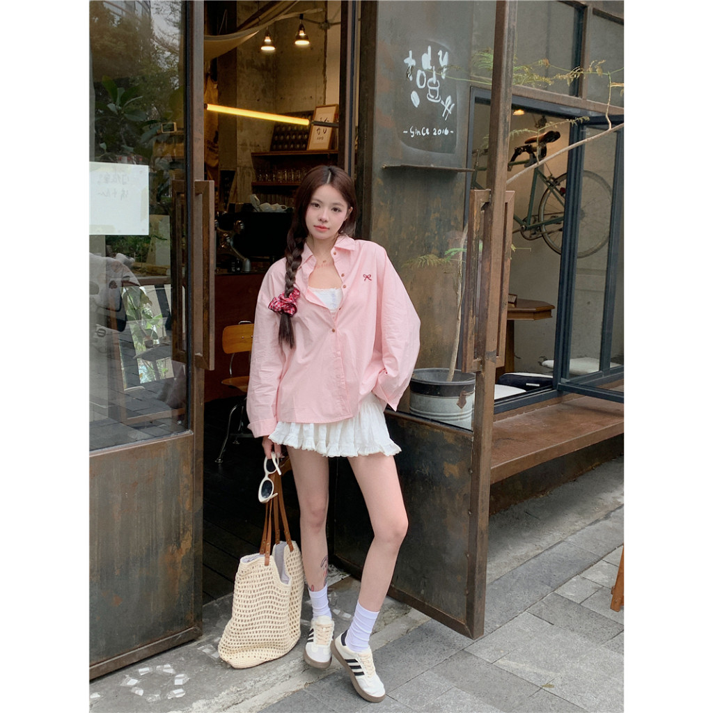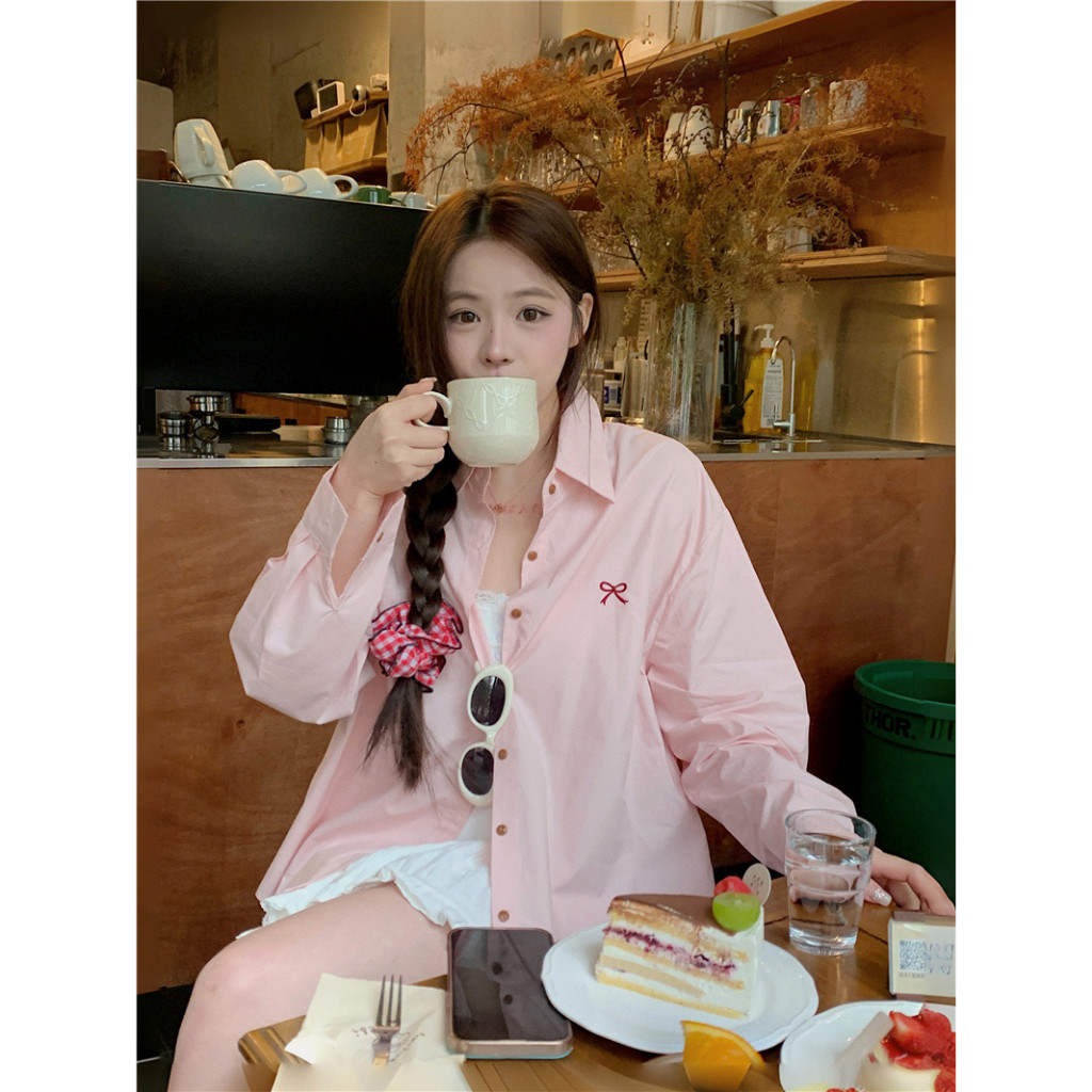 【READY STOCK AT Johor】 Hotgirl⭐Bowknot Printed Long Sleeve Shirt Women's Loose Casual Shirt Jacket