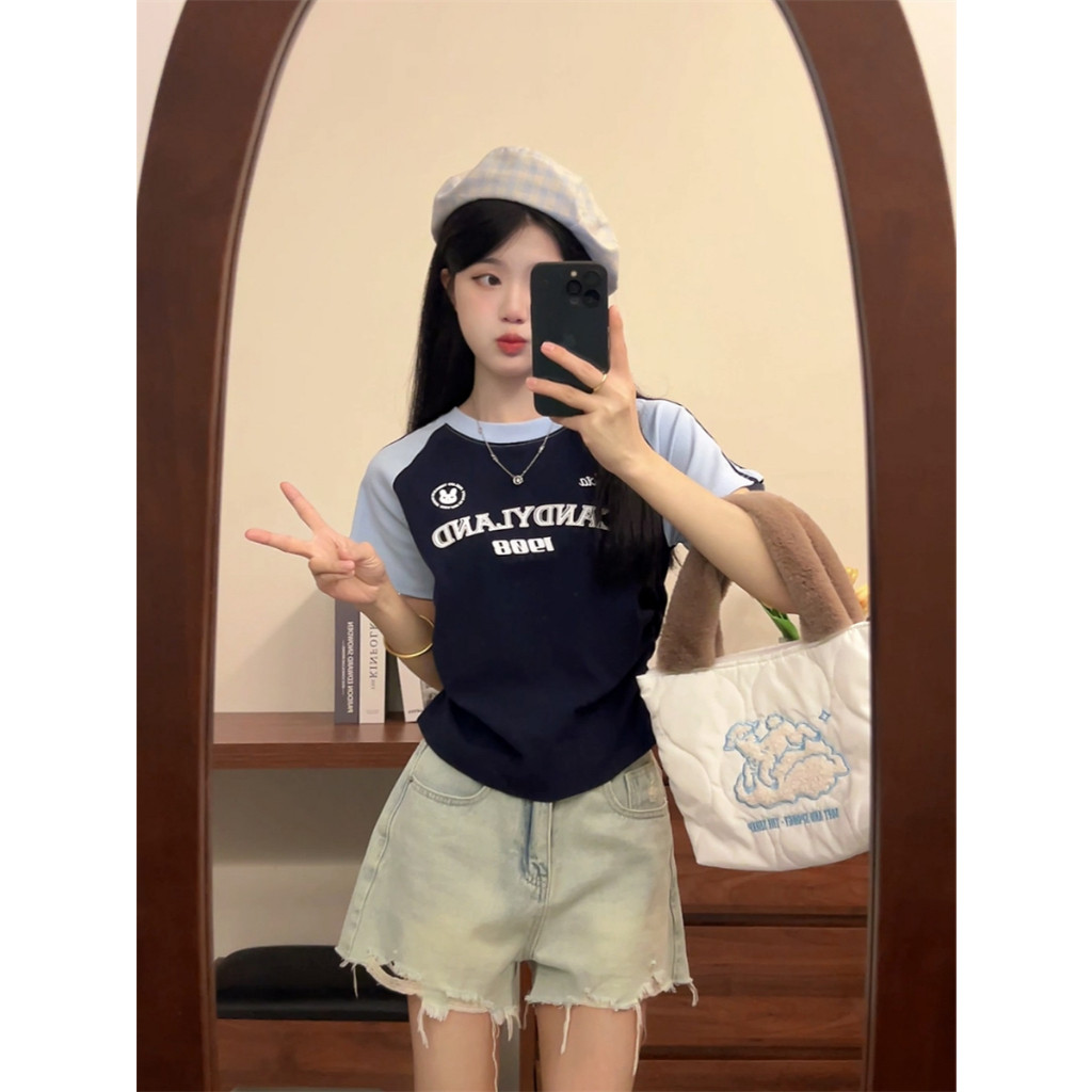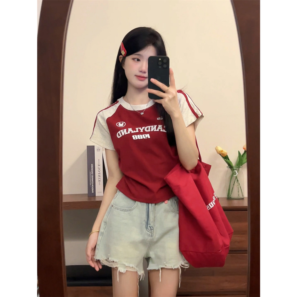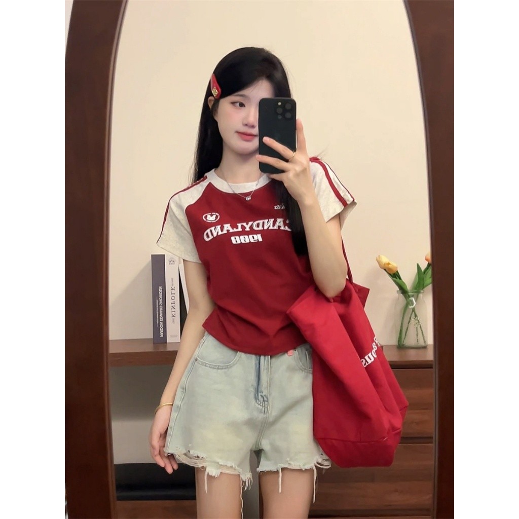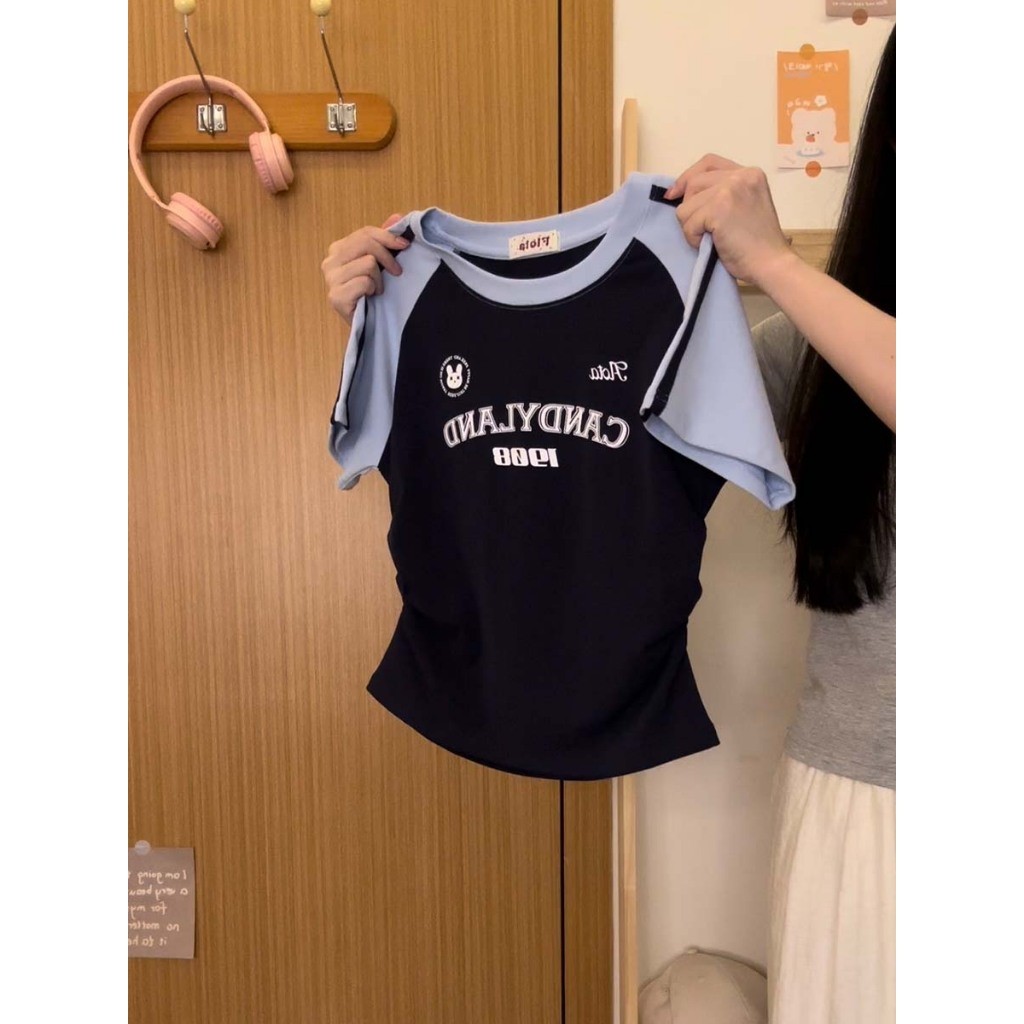 【READY STOCK AT Johor】 Hotgirl⭐Contrast Color T-shirt Women's Letter Print Short Sleeve Cropped Top