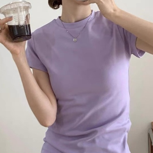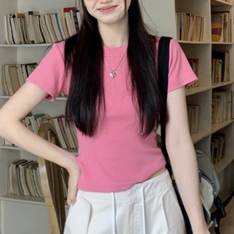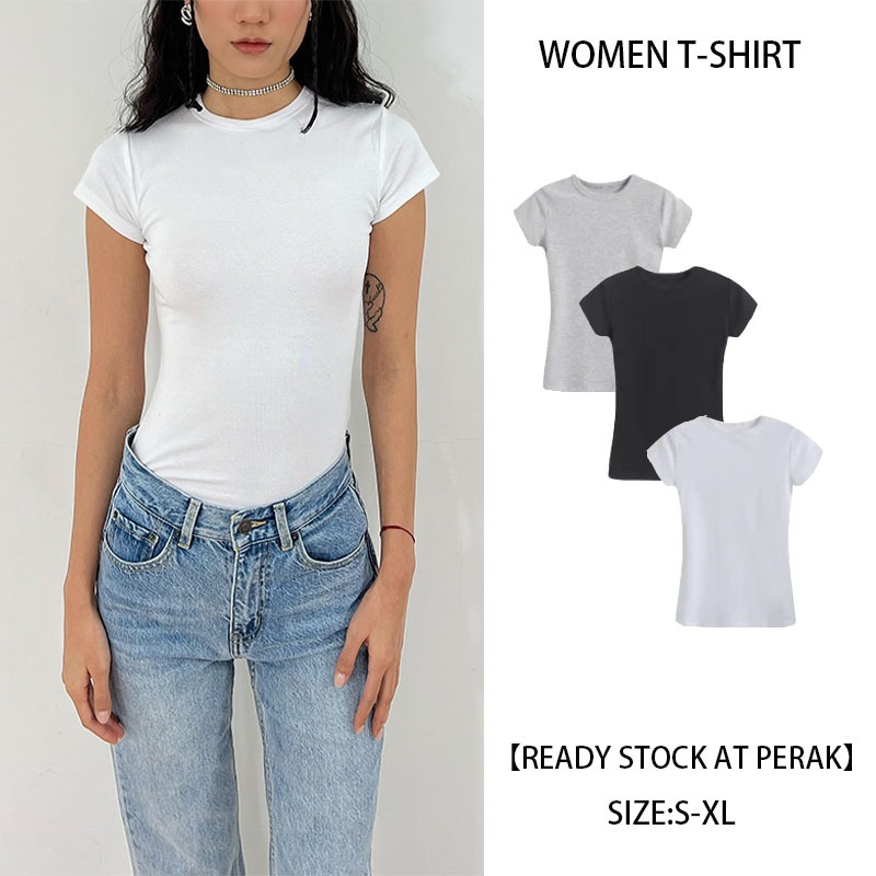 【READY STOCK AT Johor】 Hotgirl⭐Round Neck Women's T-shirt Short Sleeve Casual Solid Color