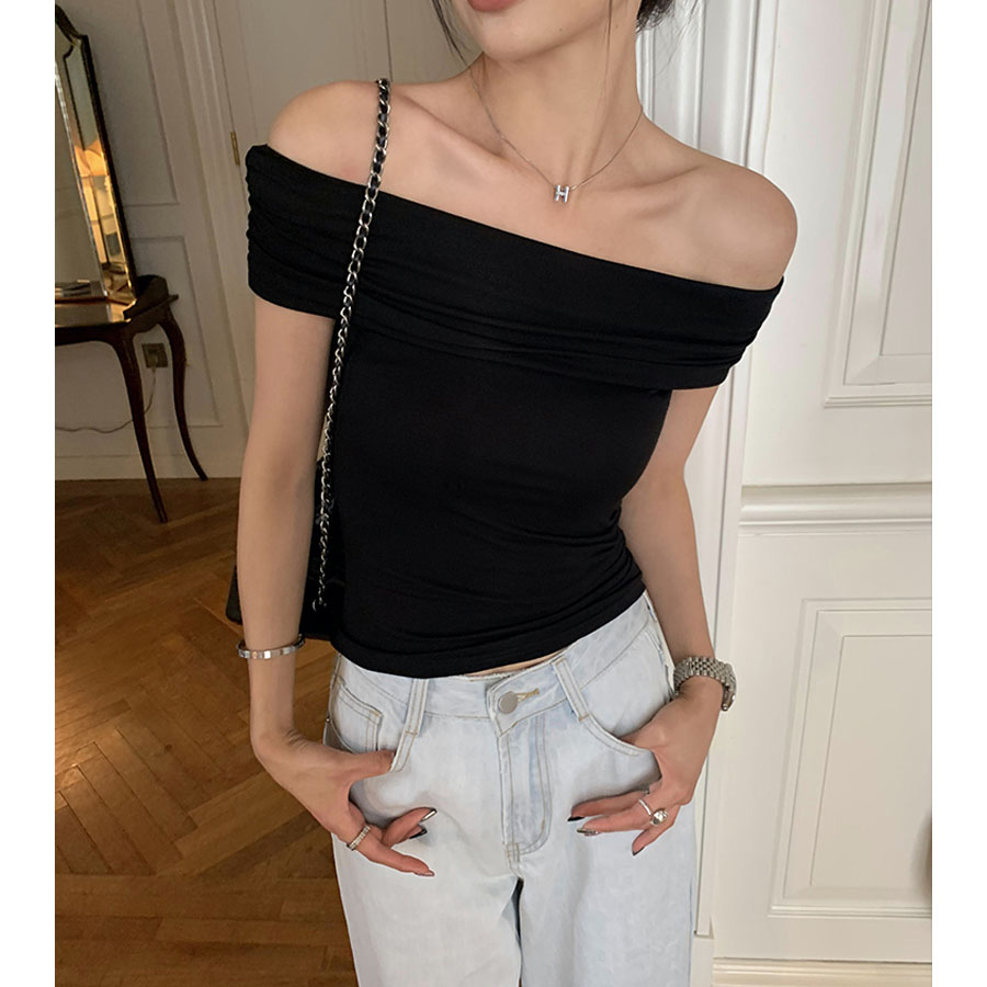 【READY STOCK AT Johor】 Hotgirl⭐White sexy one shoulder short sleeve T-shirt for women Slim fit cropped top