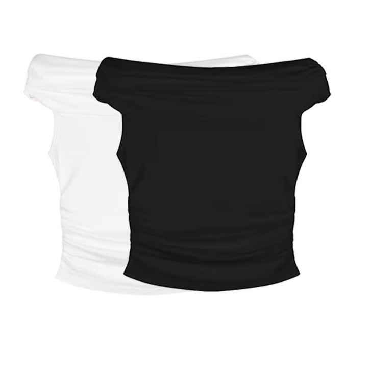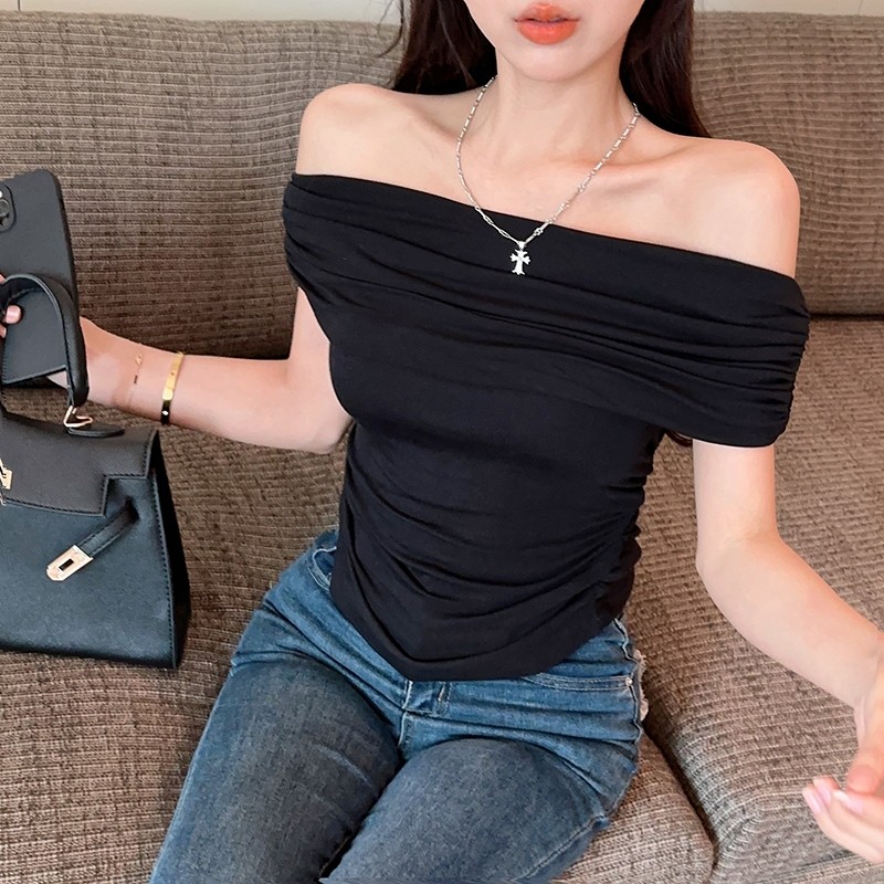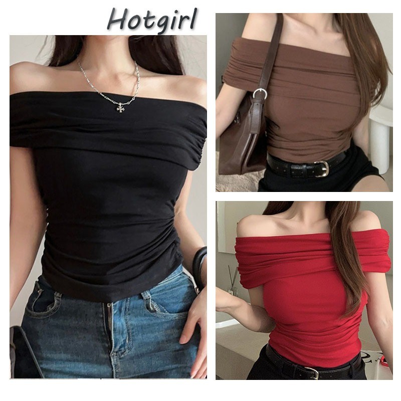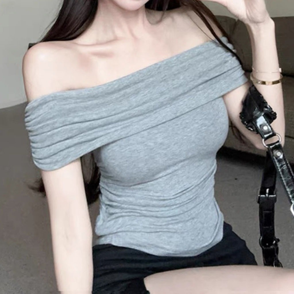 【READY STOCK AT Johor】 Hotgirl⭐White sexy one shoulder short sleeve T-shirt for women Slim fit cropped top