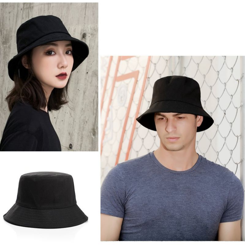 【READY STOCK AT MALAYSIA】Double-Sided FULL BLACK Fisherman Hat Two-sided Bucket Hat Cap READY STOCK Topi Nelayan Fashion