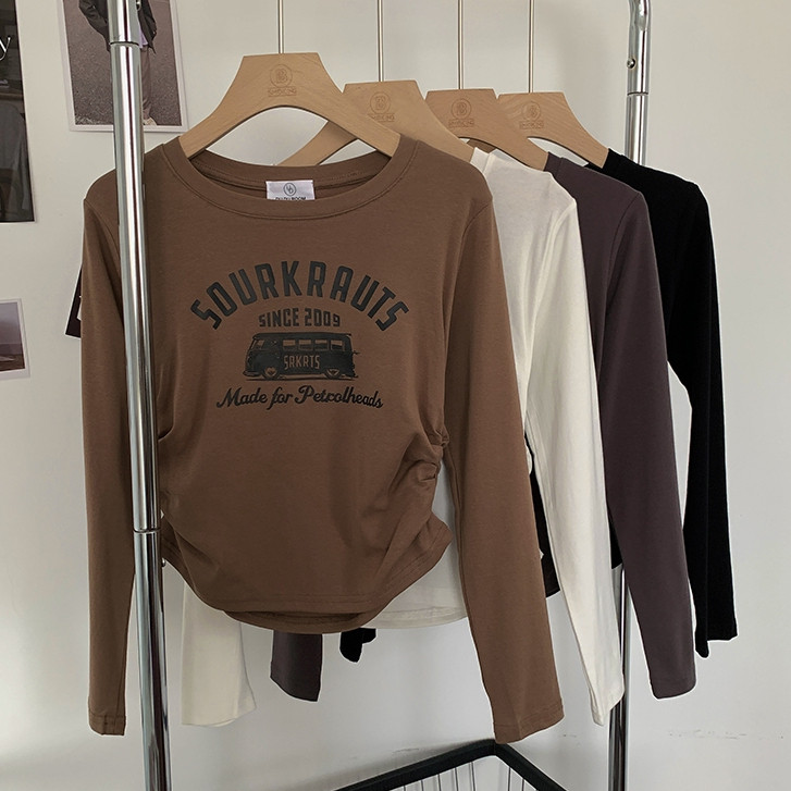 【READY STOCK ATJohor】 Hotgirl⭐Women's Slim Fit Long Sleeve T-Shirt Pleated Top
