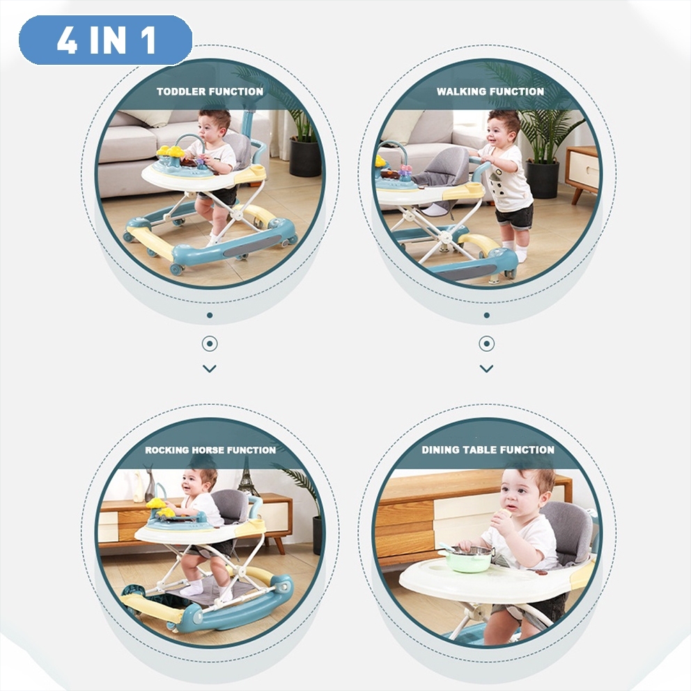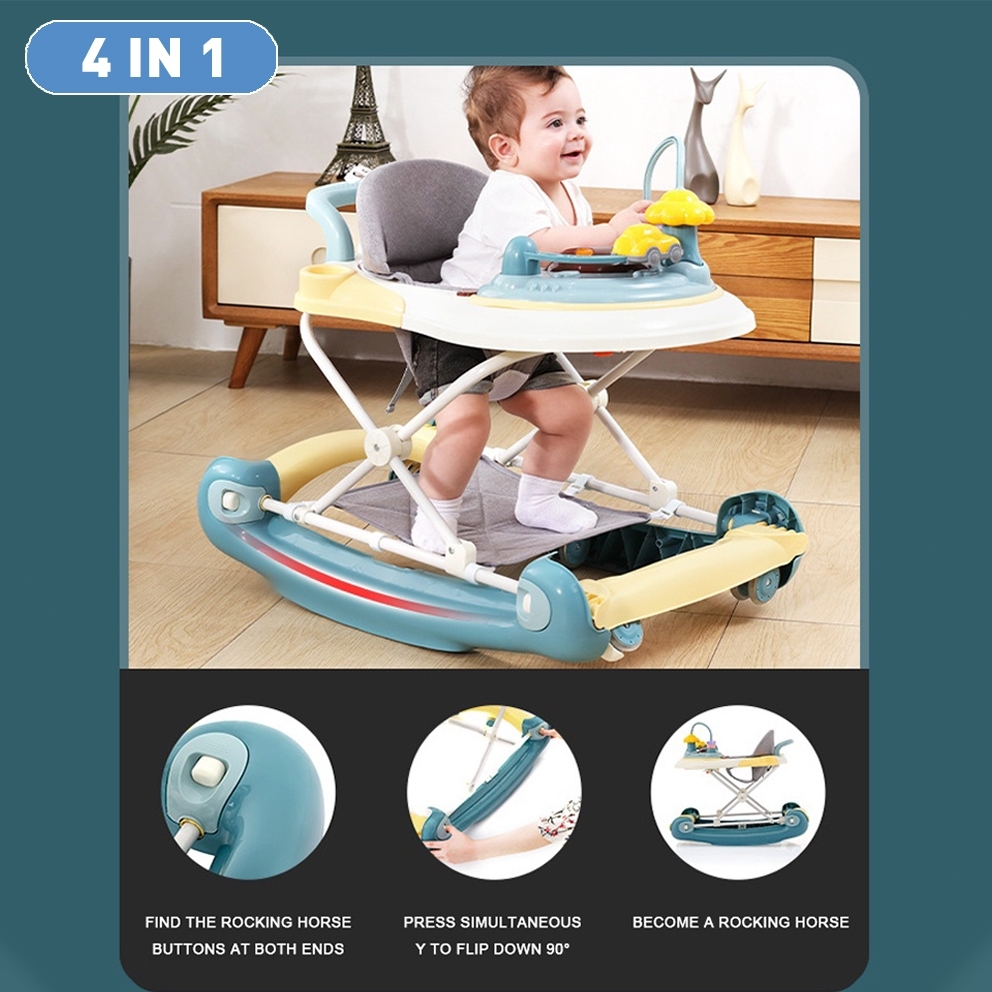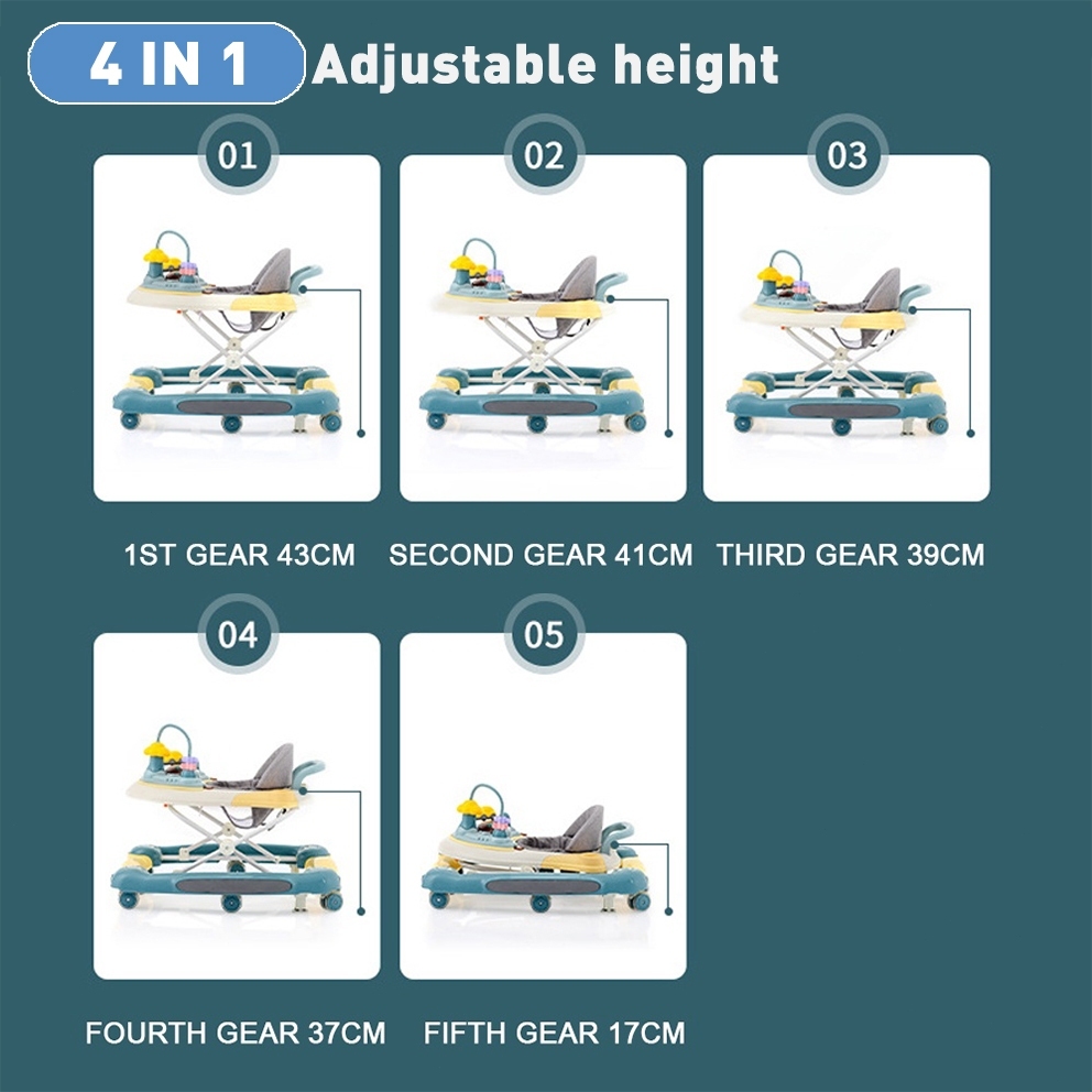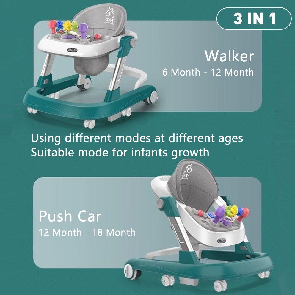 Ready Stock baby walker With Music Anti-O-Leg Foldable Portable Adjustable Height Learning Walker Baby Gear Walkers 學步車