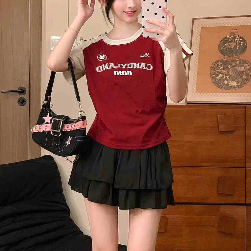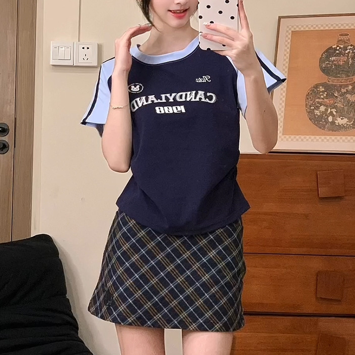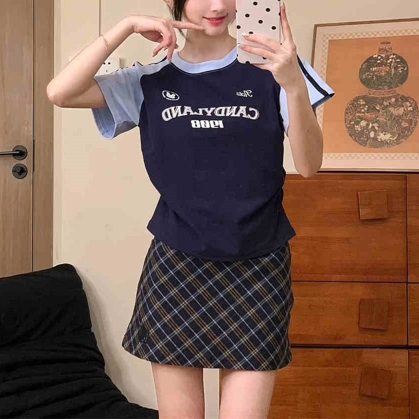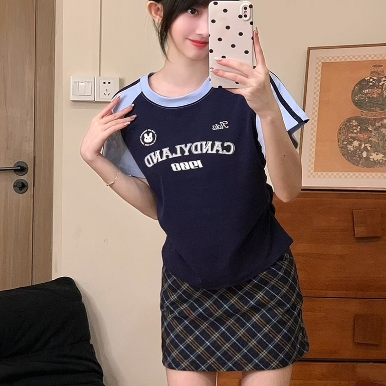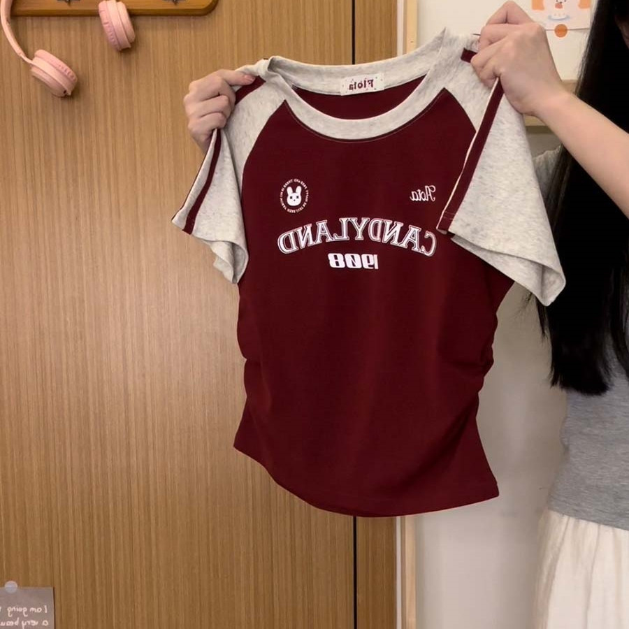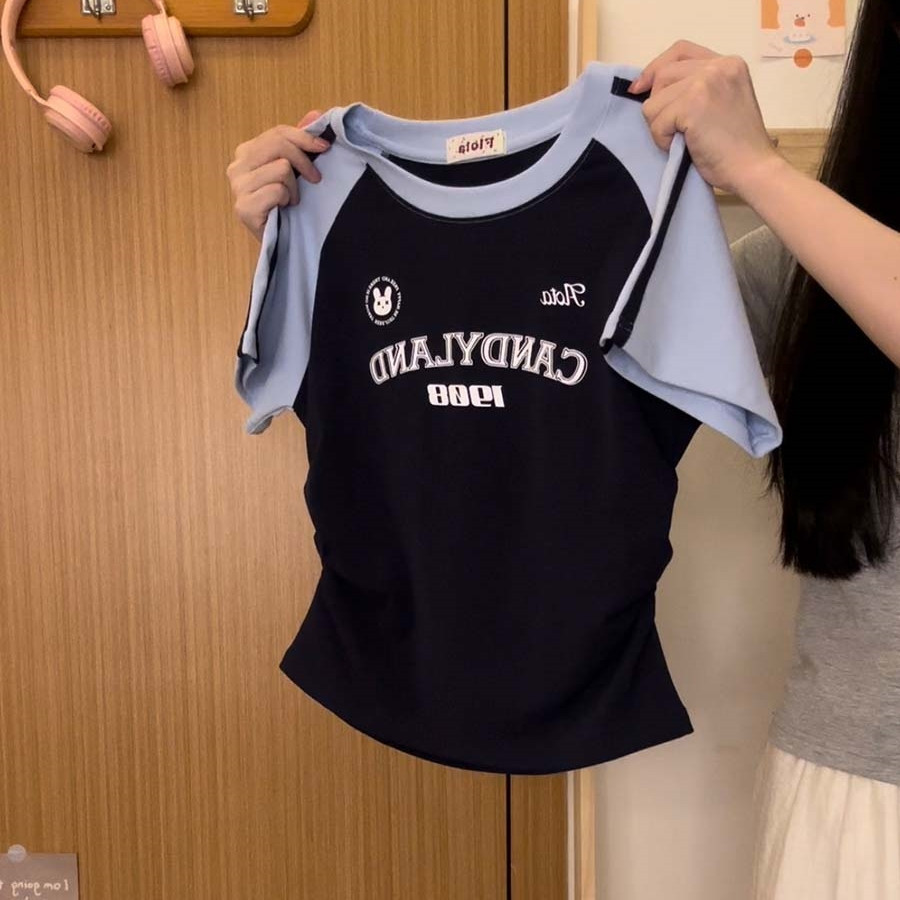 ✅【READY STOCK 】Bella Korean Style Letter Print Short-Sleeved T-shirt Women Round Neck Sweet Cute Top