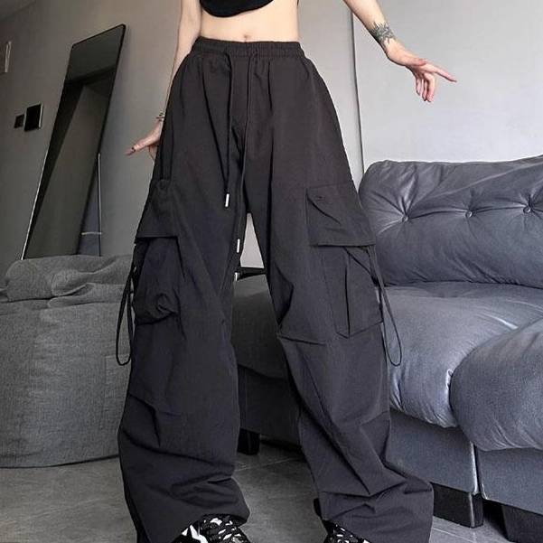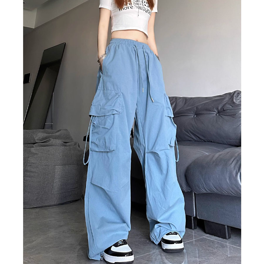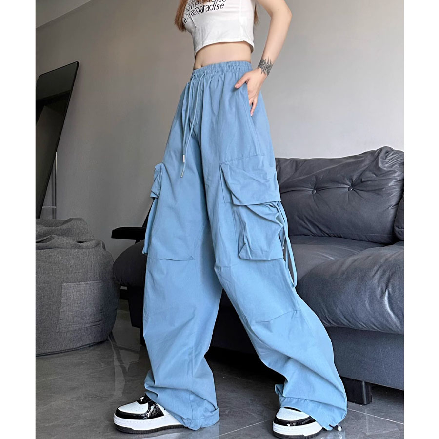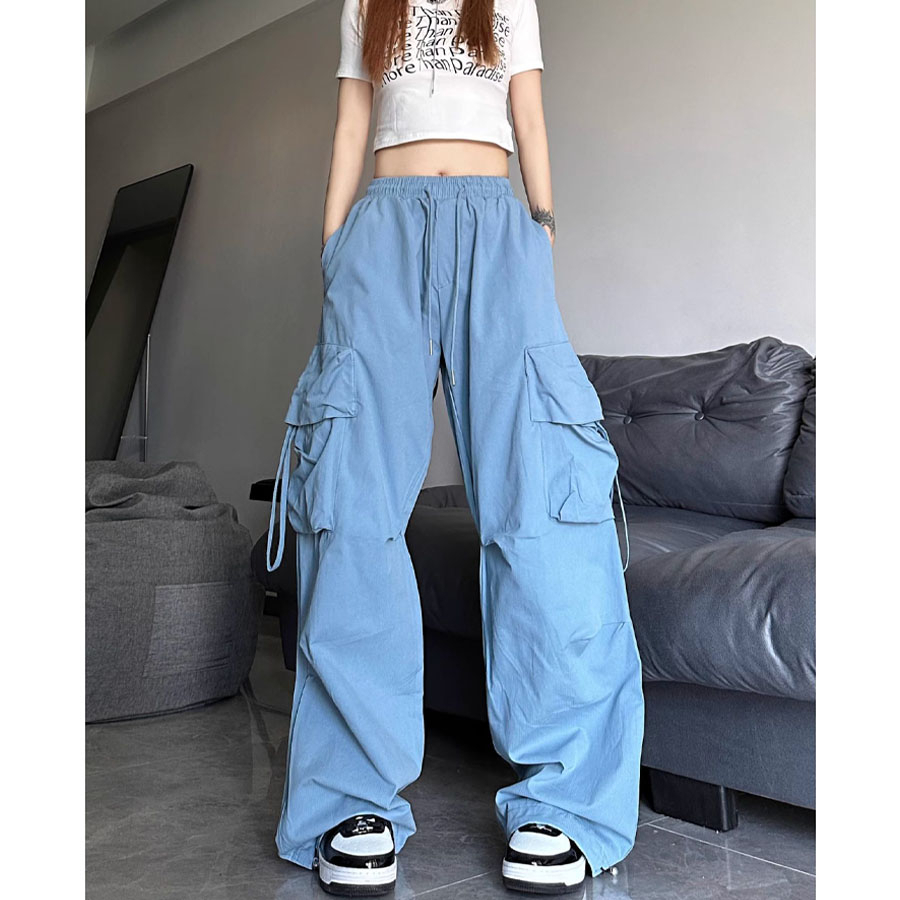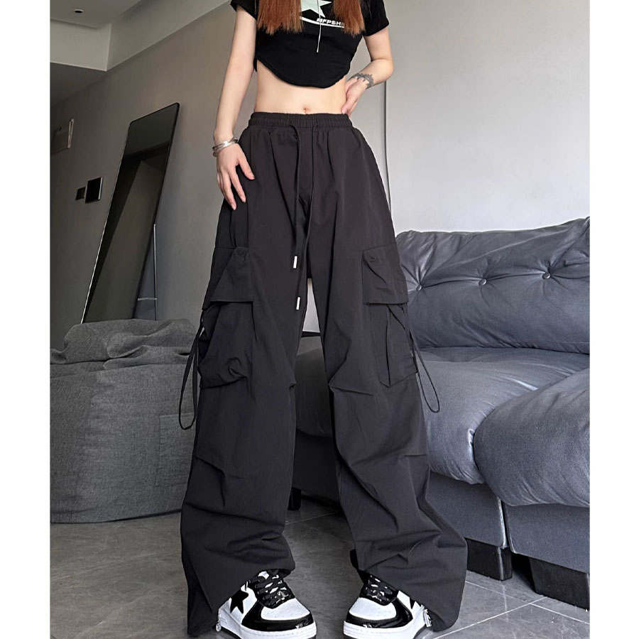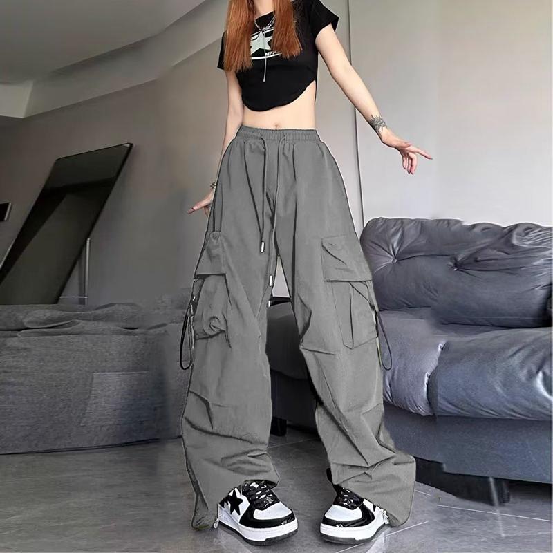 ✨【READY STOCK】Bella Women's Cargo Pants High-Waisted Wide Leg Straight Long Pants